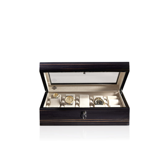 Box for 15 watches in polished ebony. Measures cm. 32,5x31x10,5- £2,000.00
