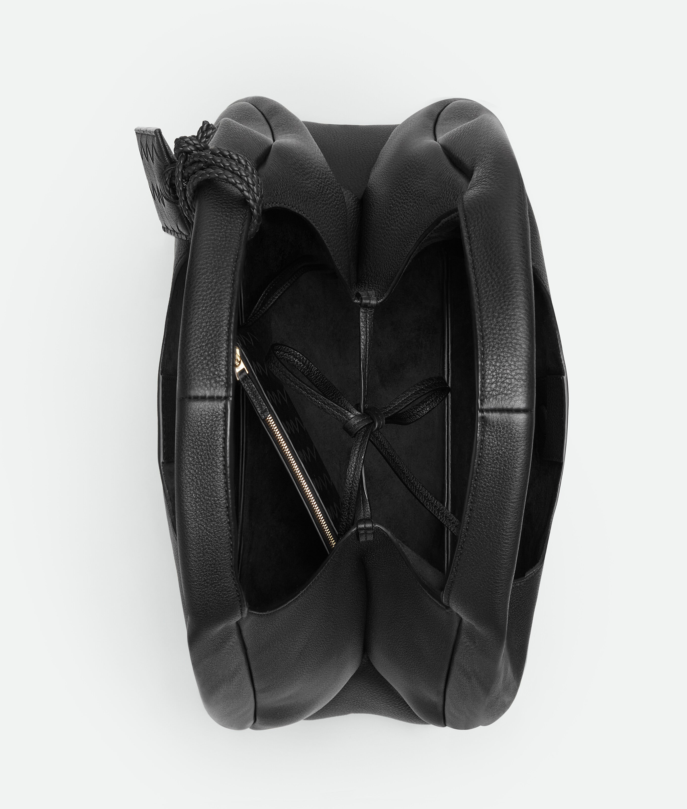 Shoulder bag with archival silhouette in grained leather with tie closure, featuring a detachable Intrecciato mirror charm.