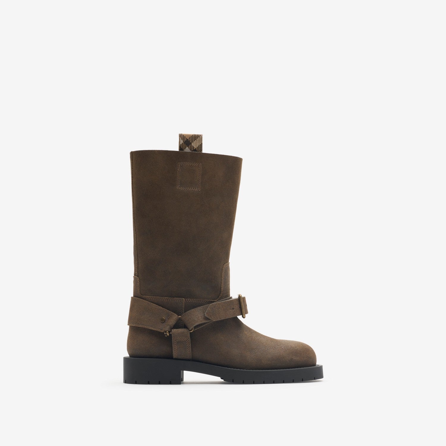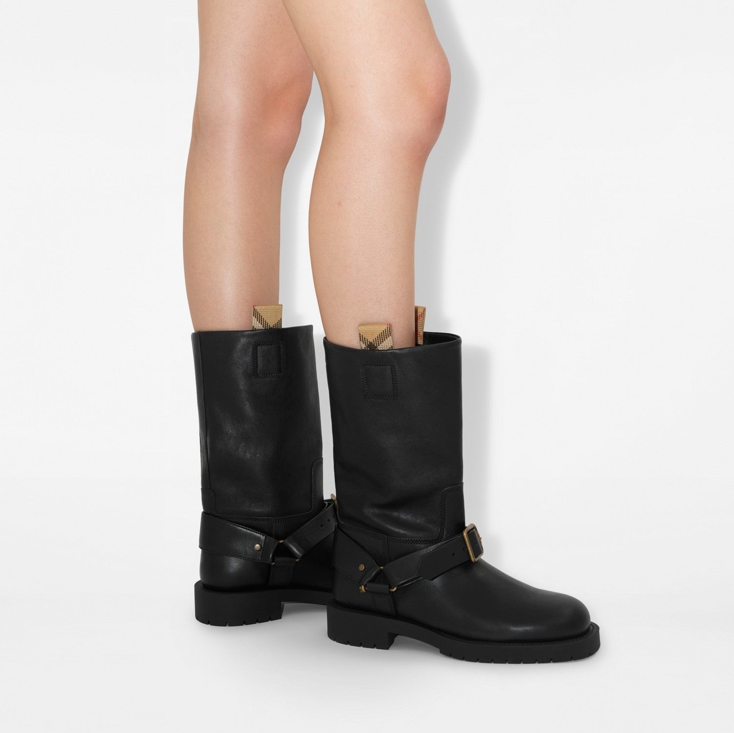 Equestrian-inspired boots made in Italy from soft calf leather, finished with B buckle straps and pull tabs woven with the Burberry Check in our signature sand colourway. The sole is detailed with our Equestrian Knight Design in contrasting Knight Blue.