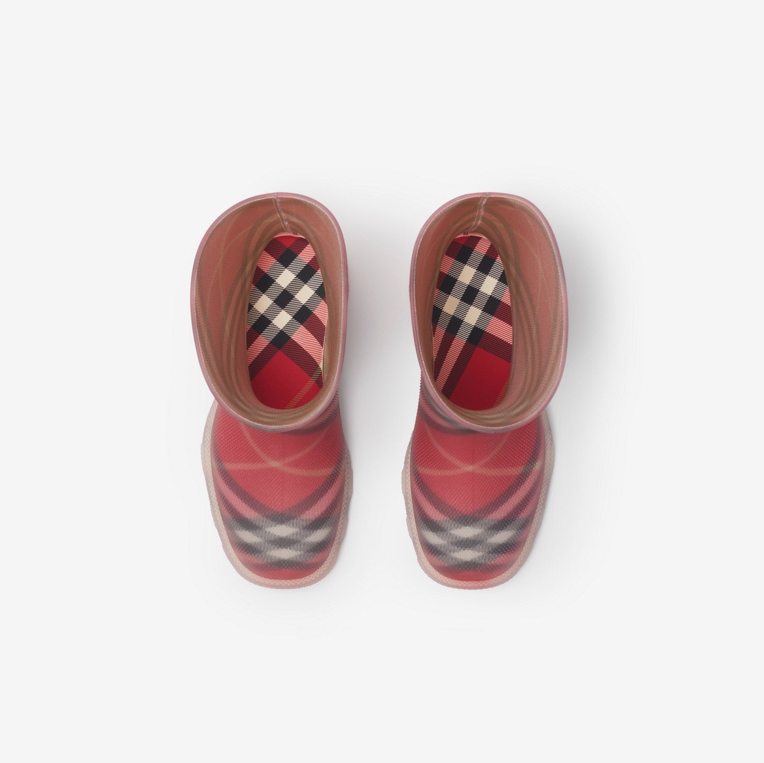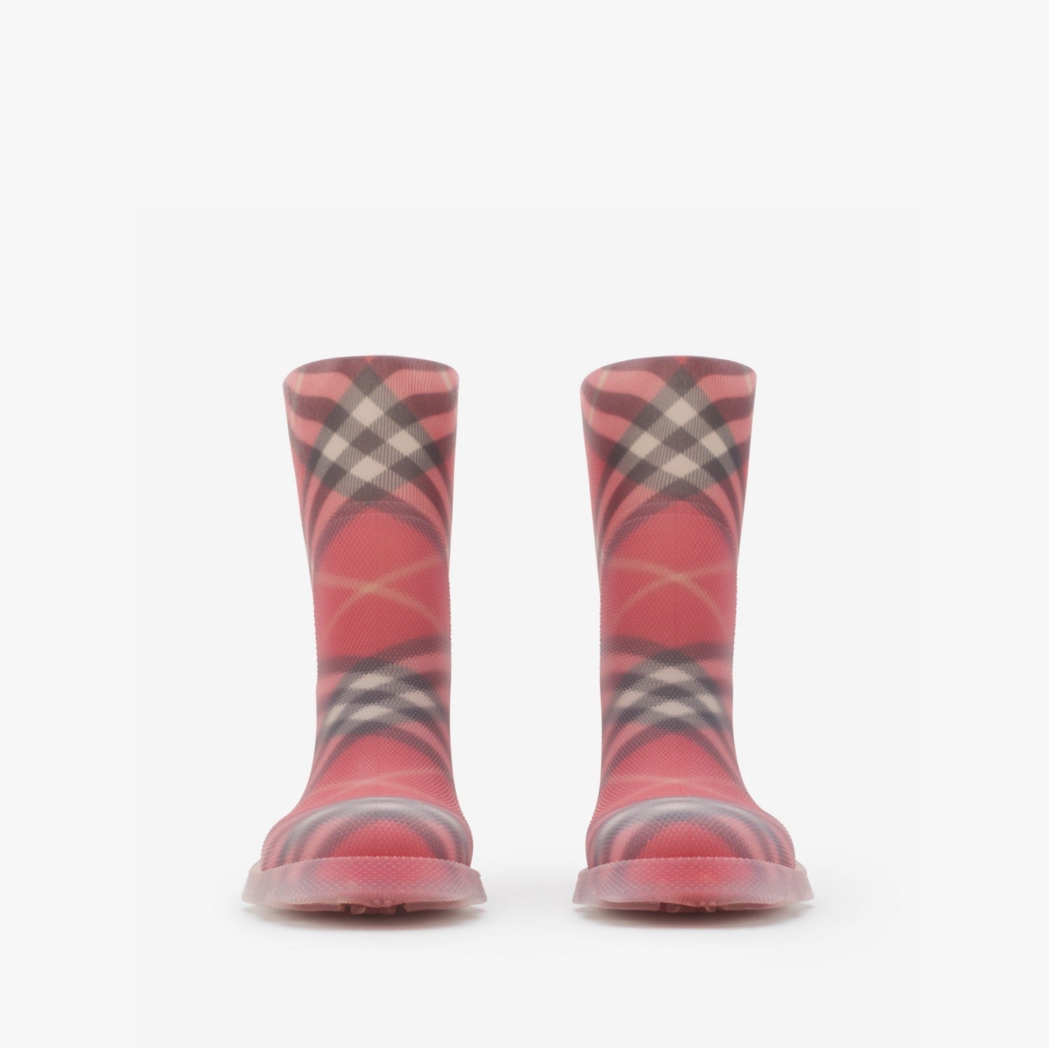 Italian-made waterproof boots in transparent rubber with a Burberry Check lining. Inspired by wellies, the design is set on a chunky sole featuring archival Burberry lettering.