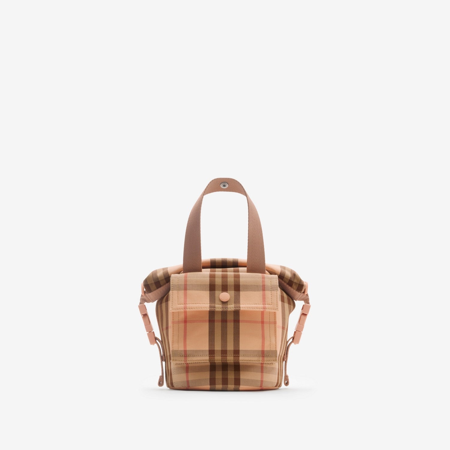 A roll-top tote bag in cotton woven with the Burberry Check. The compact style comes with an adjustable crossbody strap and features a magnetic front pocket for easy access.