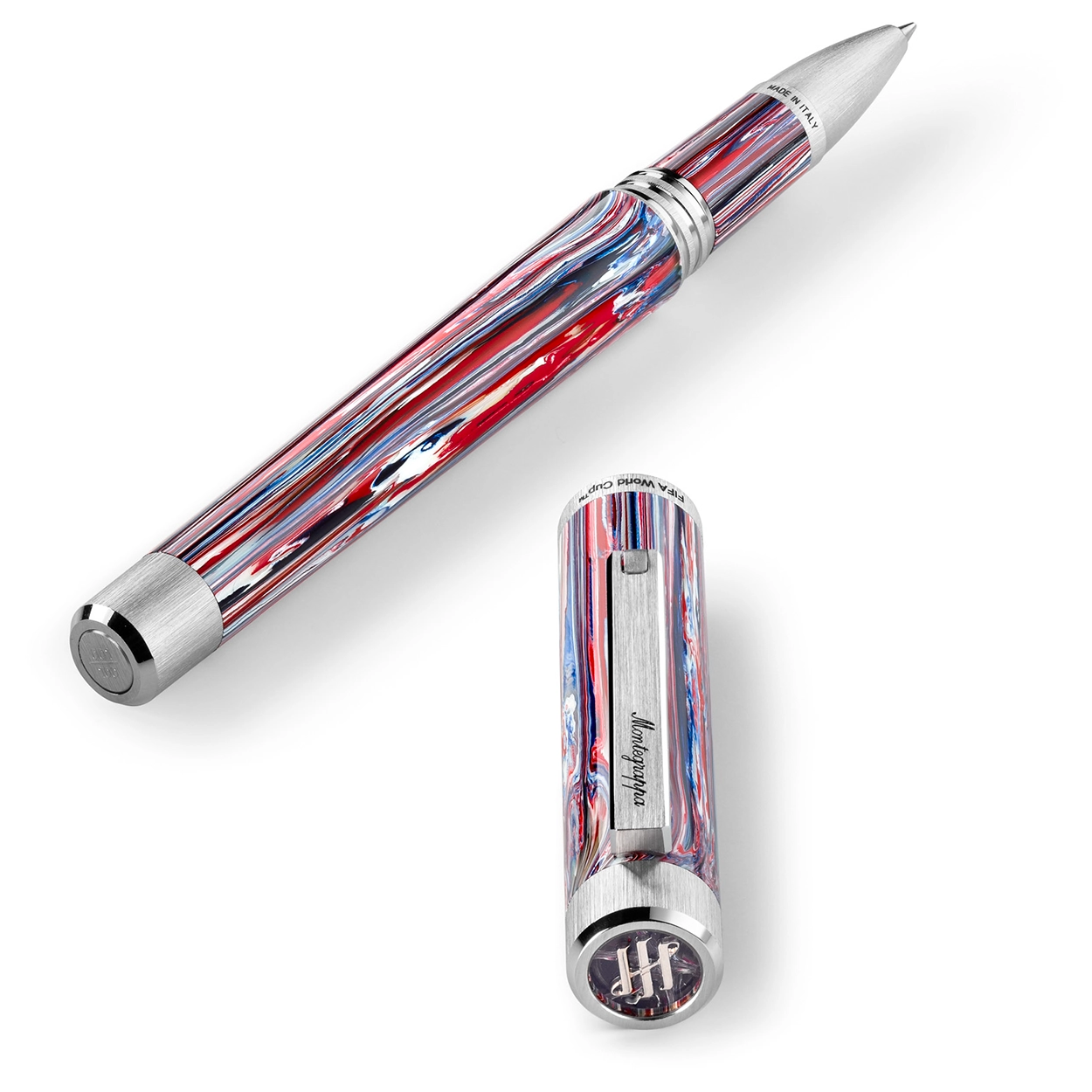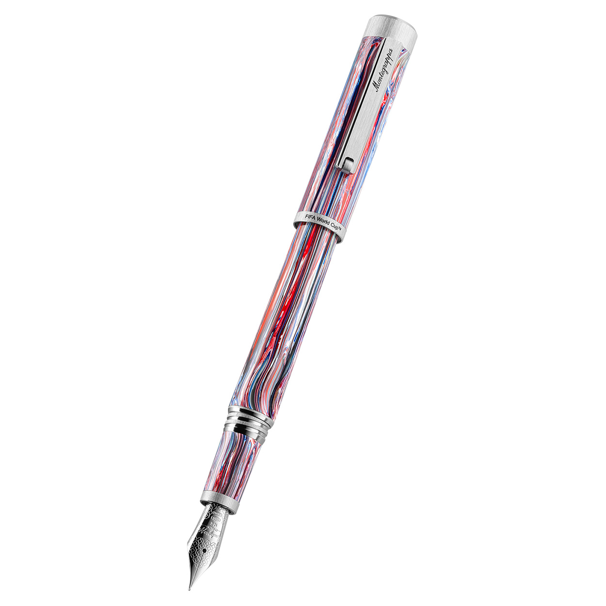 Fountain pens are cartridge-converters with a 6mm 14K white gold filigree nib (EF, F, M, B, Stub 1.1). All modes are delivered together with the journal in our special-edition 23x23cm FIFA® Classics box.