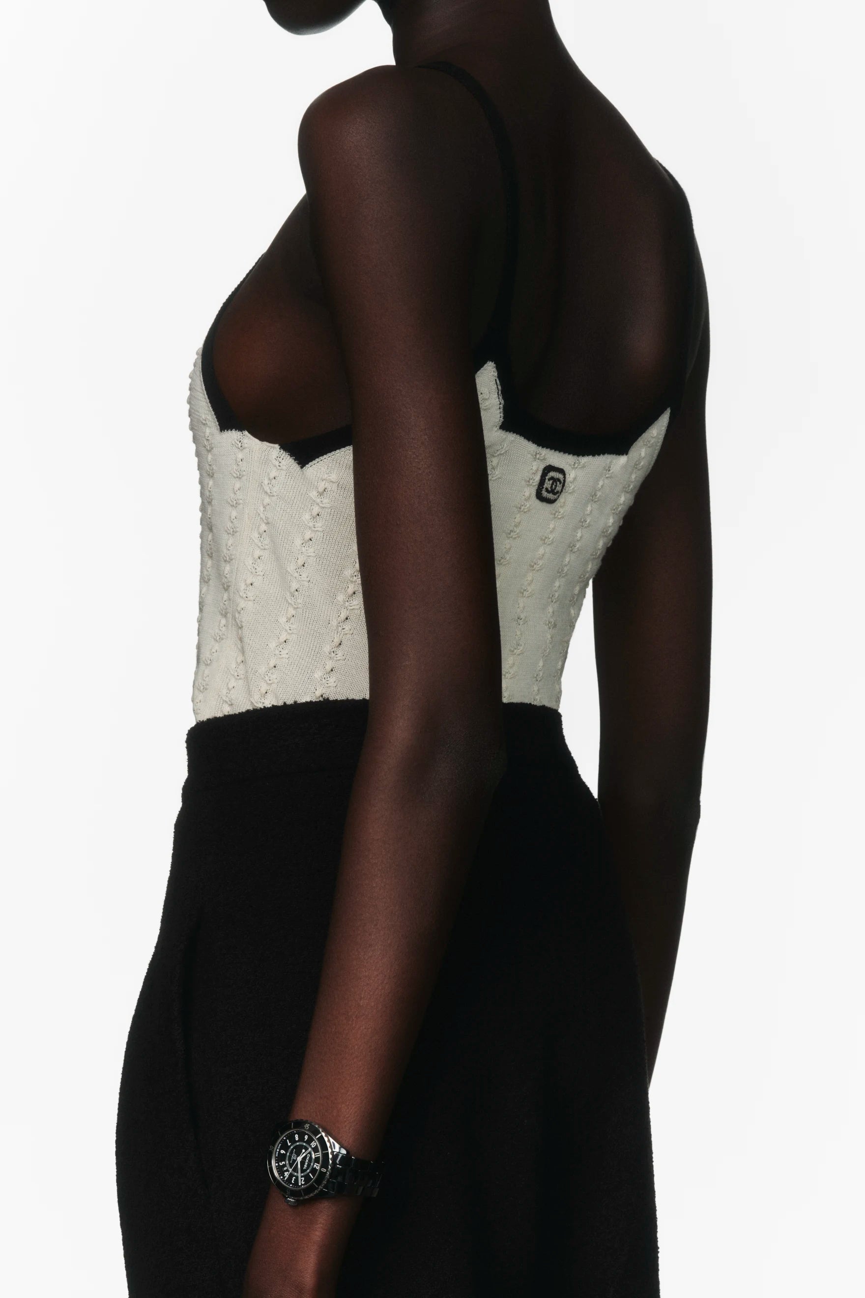 The bracelet is made of highly resistant black ceramic links, which have been assembled by hand.