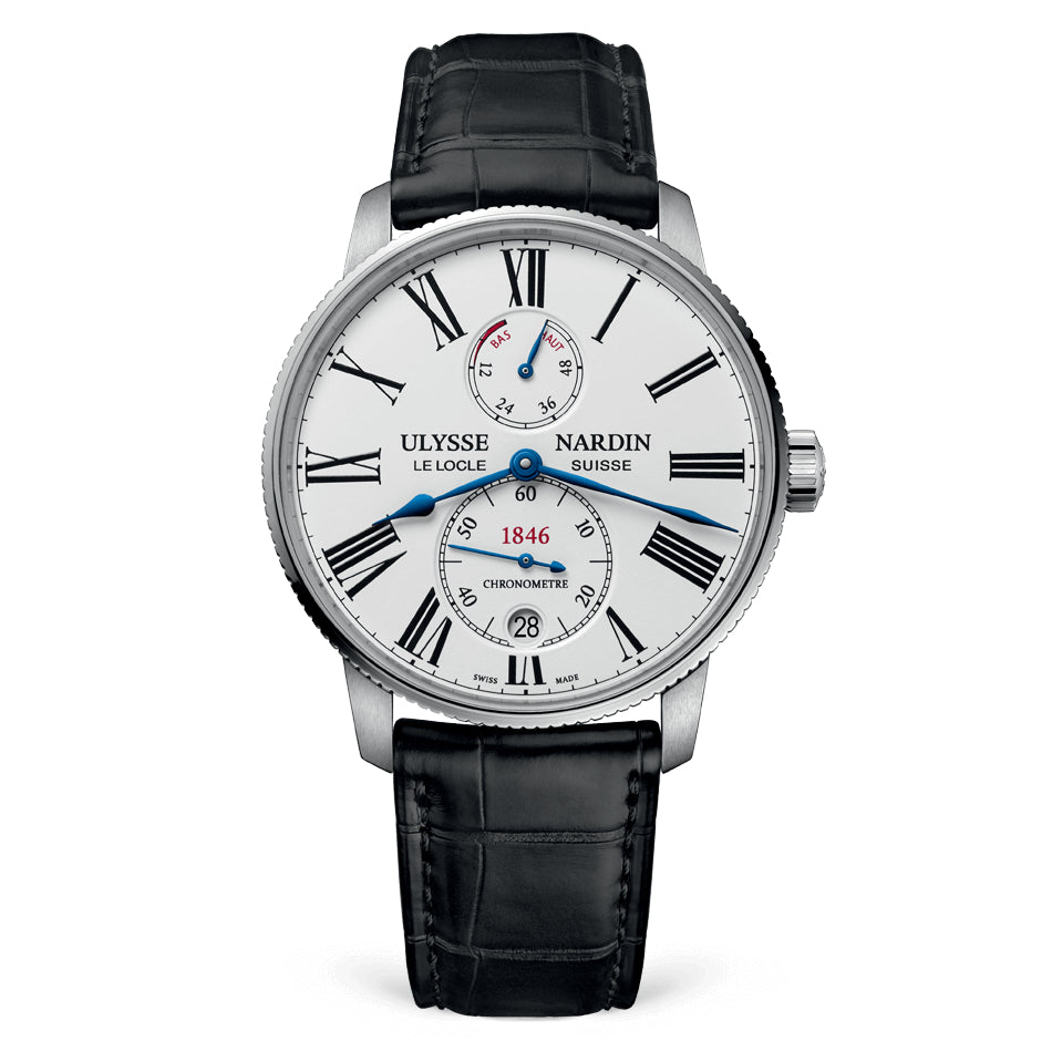 Iconic features of the Marine collection are in evidence: the Roman numeral indexes, and the emblematic logo.