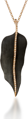 Necklace oak leaf set in the middle in white diamonds. 18ct pink gold matt, white diamonds.