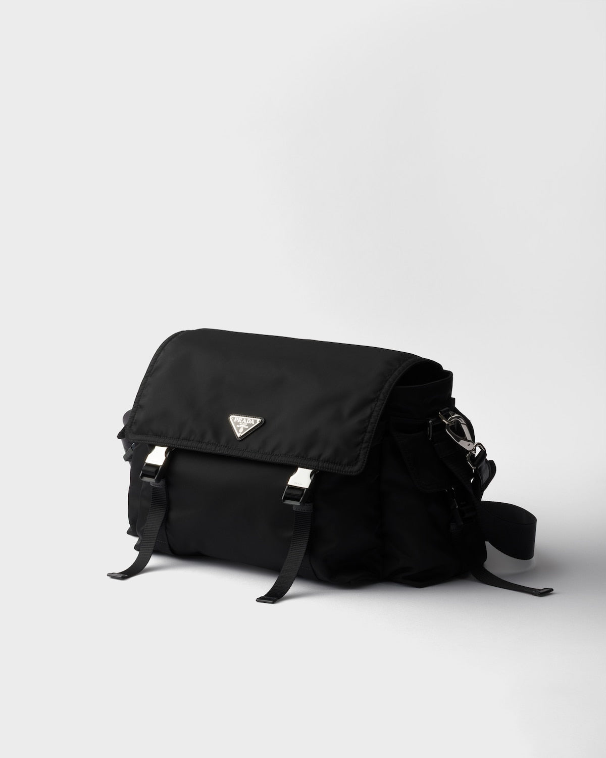 The Explore bag, a perfect synthesis of sophistication and functionality, has a multi-pocket silhouette with soft lines. Designed for urban explorations and outdoor adventures, the style comes with a shoulder strap and removable handle so it can be carried different ways. The combination of Re-Nylon and leather expresses the dualism of the design that combines technical details and refined notes.
