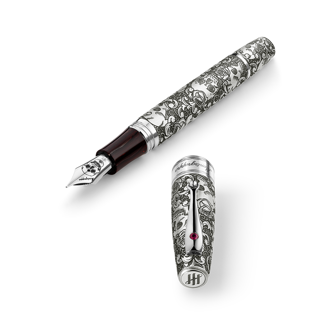 Since its 1930s heyday, our famed Extra silhouette has lost nothing in relevance. Now, a special, small-batch reissue flouts traditional rules in pursuit of a grittier truth. Around classical contours, monochromatic, all-over tattoo explores the spaces between vitality and mortality. It is here where we find the strength to defy destiny and seek new paths. A classic, with a rebellious twist.