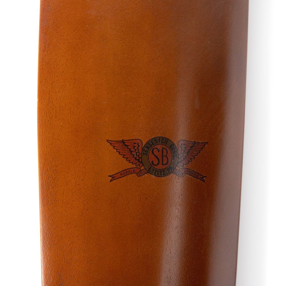 The Sopwith was the mainstay fighter-plane of the British and USA air forces in the early 1900s. Brightly painted in various national colors, it ruled the skies for a number of years. Some of the propellers were later suppled by an American propeller maker. Admire the shape and finish of a wood creation that once propelled daring aviators over uncharted landscapes. Feel the smooth, somewhat distressed, honey surface. The punched serial numbers around the hub. The authentic 1030s maker's decal. Picture it in a bar or a boy's room, a corner of the living room or a restaurant!