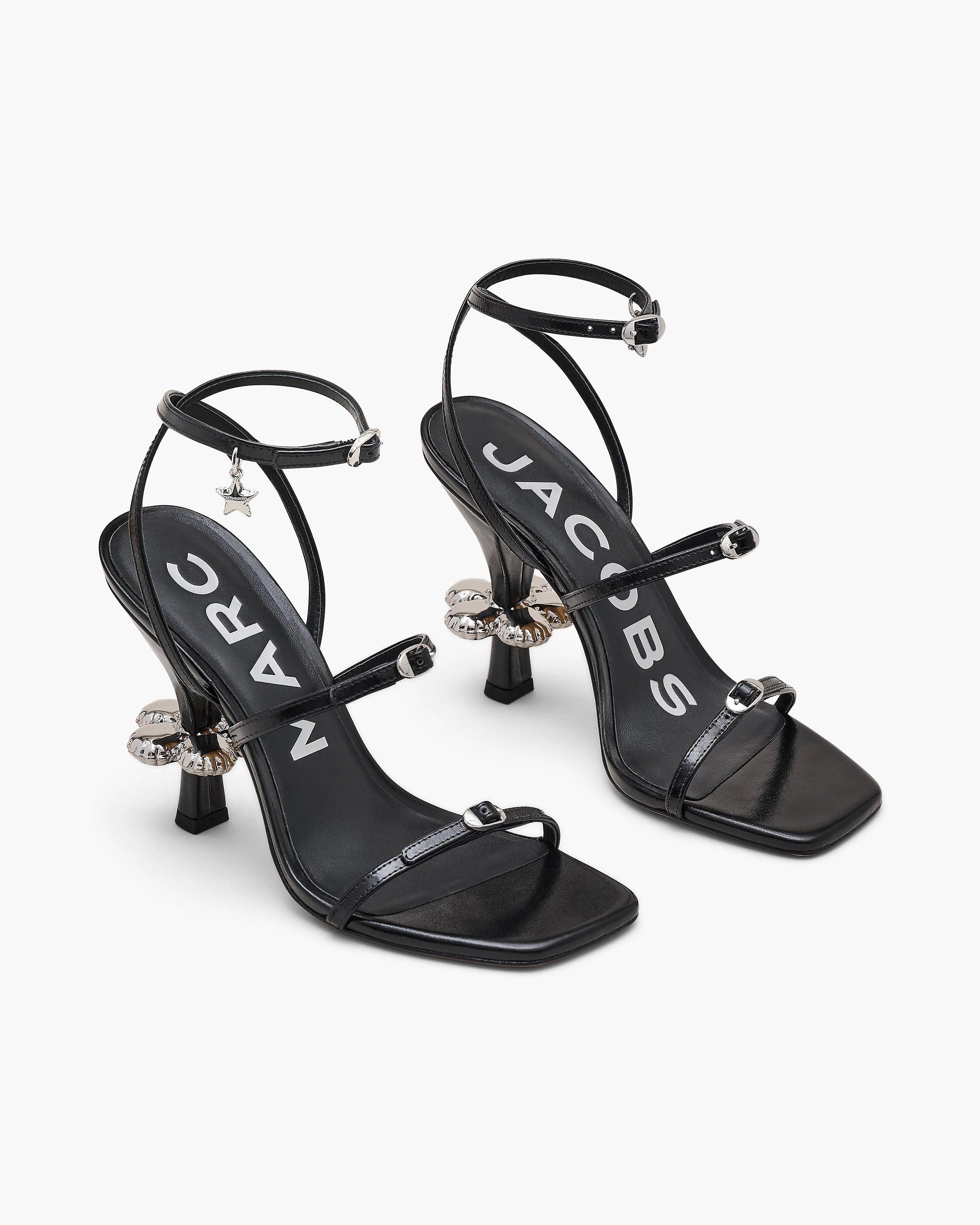 Add joy to your evening ensemble. These leather heels feature a sleek ankle strap - finished with a dangling charm - and a sculptural daisy balloon heel. Crafted in smooth leather, they combine luxury and whimsy for an unforgettable formal statement.
