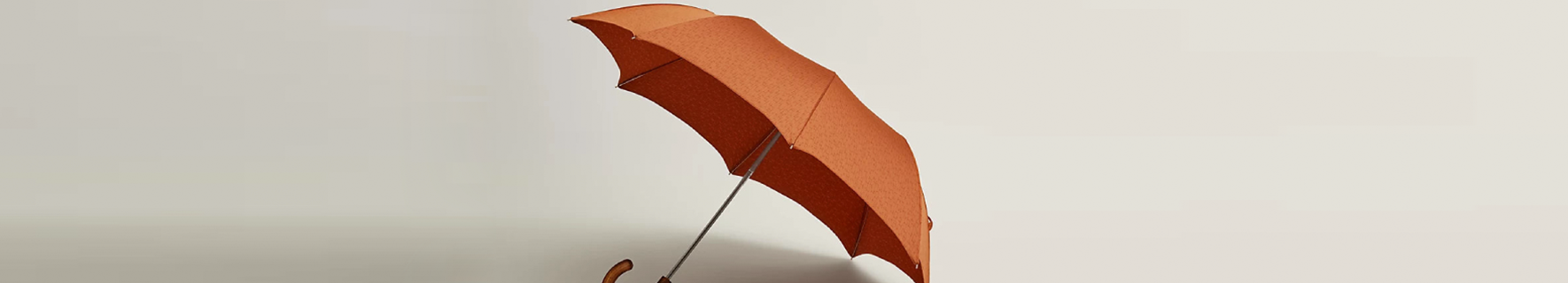 Folding umbrella in jacquard canvas- 100% polyester- Tinted maple wood FEATURES: Made in Italy Height: 35.4" | Diameter (open umbrella): 37"