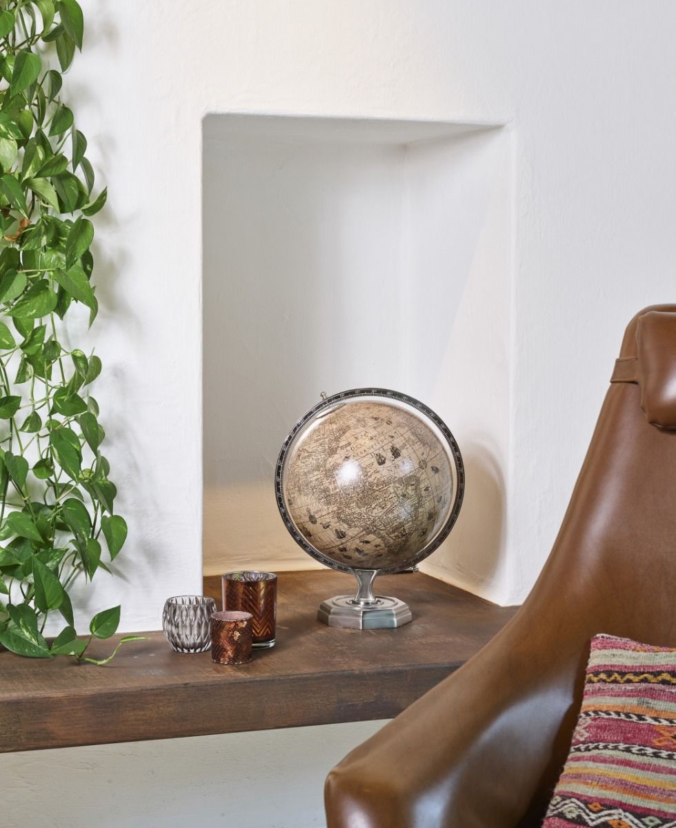 Legendary cartographer, Jodocus Hondius, worked in Amsterdam during the 1600s, then one of the world's commercial hubs. Spin the world and enjoy a touch of true history. Galleons sailing oceans to the farthest corners of the then known world. Exotic cultures, languages, people and goods to be traded, bought and sold. Gold and ivory, spices and silks. The Old World at your fingertips!