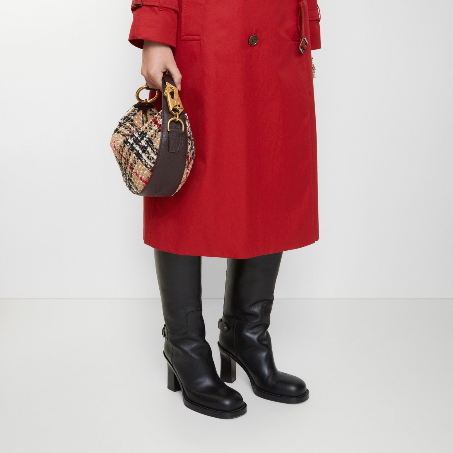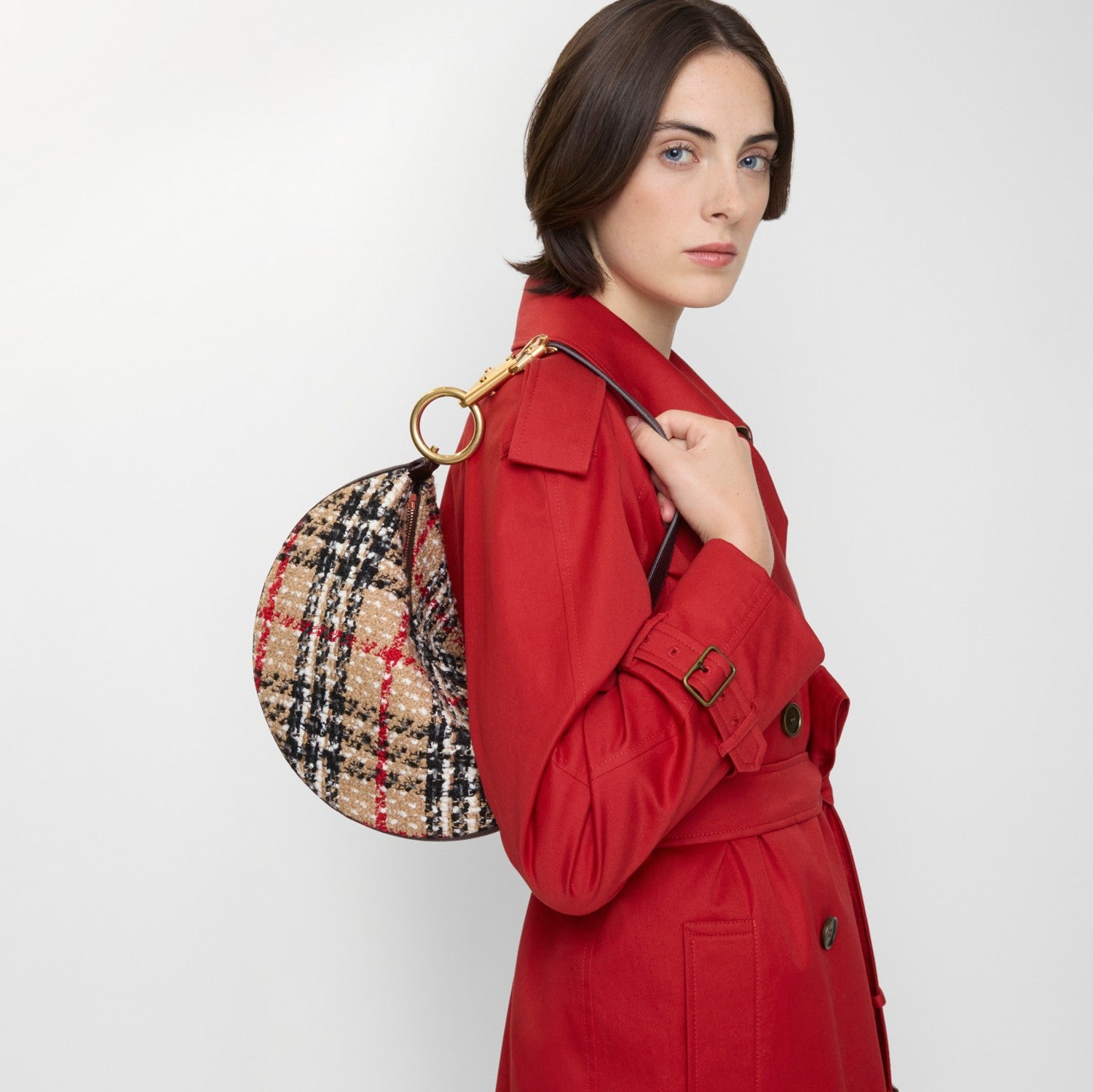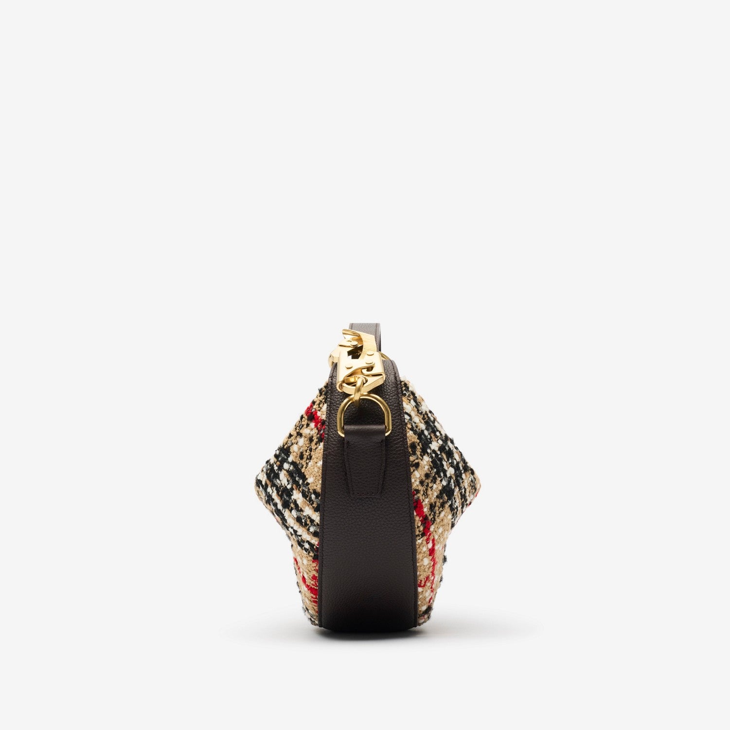 The Knight Arc is crafted in Italy from a Burberry Check wool-blend bouclé with a calf leather base. The softly structured mini shoulder bag is lined with supple suede and showcases the signature horse clip hardware – a play on our Equestrian Knight Design. The hardware can be reattached to adjust the strap length.