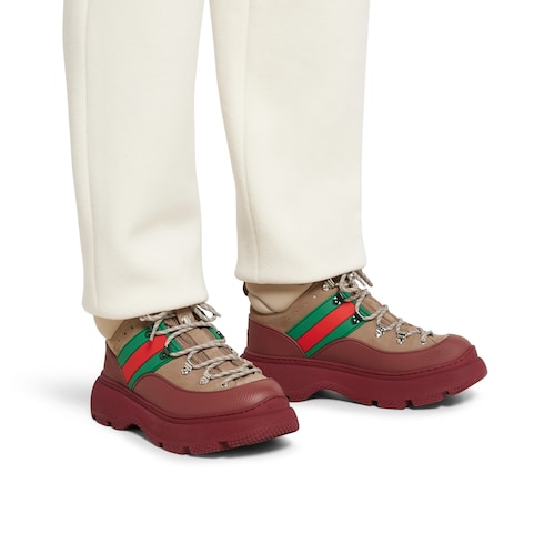 Inspired by mountain hikes, this men's lace-up boot blends functionality with iconic style. Crafted from GG suede and lined with plush merino wool, the design offers a unique take on outdoorwear.