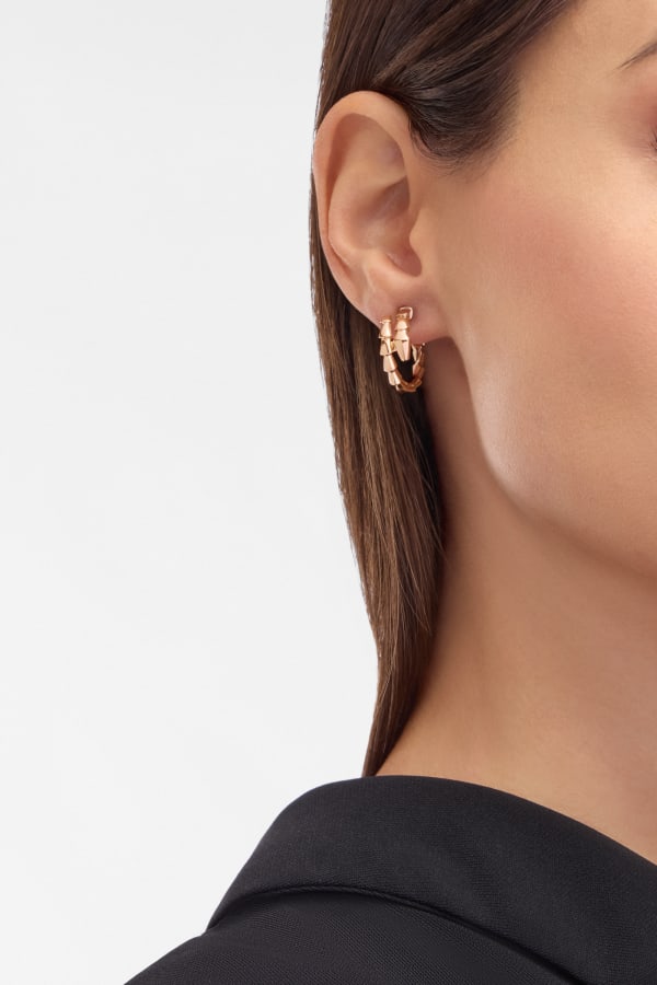 With their signature blend of pure aesthetics, enveloping shapes and charismatic flair, the Serpenti Viper 18 kt rose gold earrings are an essential interpretation of Bvlgari’s icon of endless metamorphosis. Capturing the powerful and ever-evolving nature of the mythical serpent, the magnetic jewellery creations inspire us to embrace change as a source of strength and self-confidence. Easy to mix and match, the earrings offer endless styling options, embodying the collection’s versatile spirit.