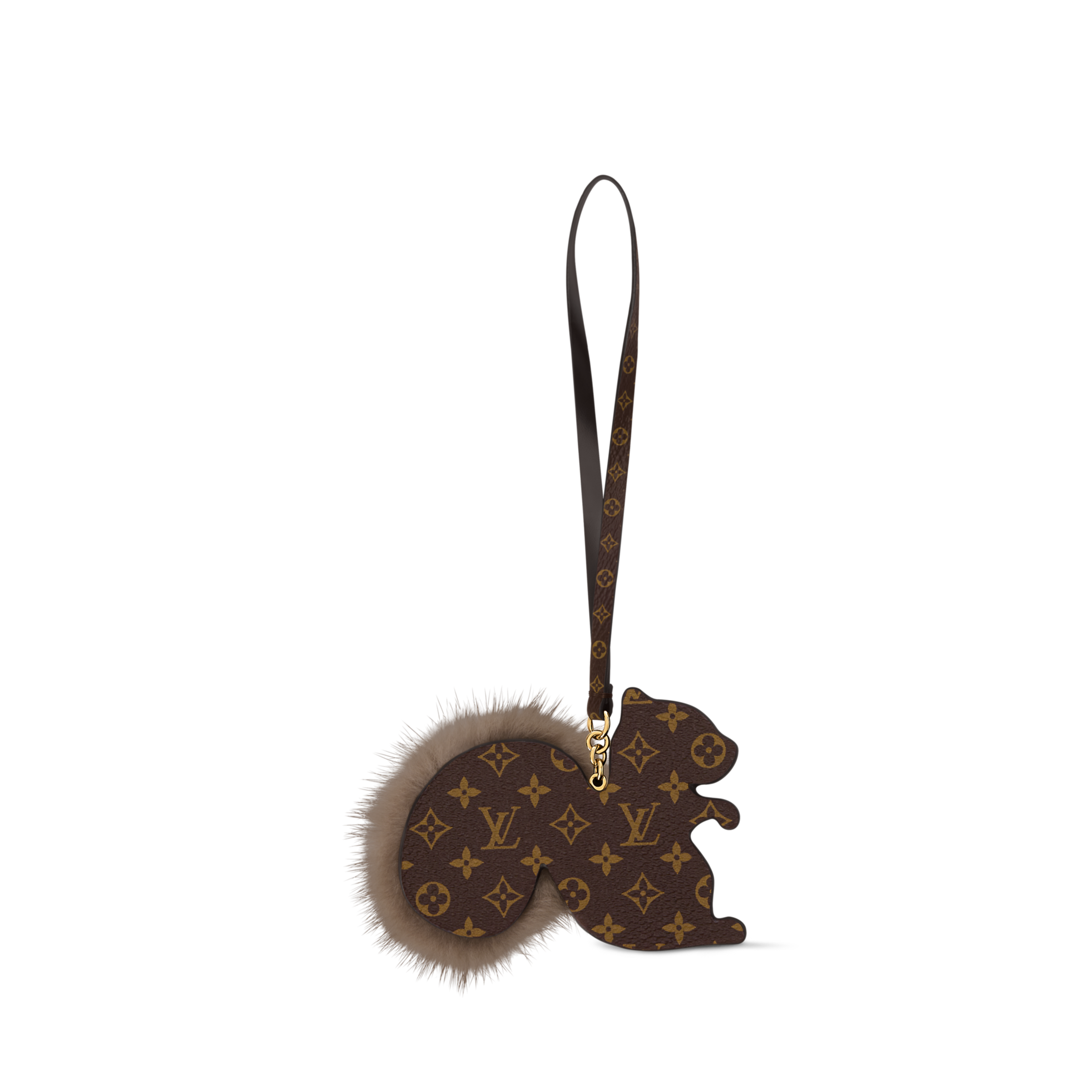 The distinctive design of the Squirrel LV Furry Friend Bag Charm captures the irresistible appeal of the animal world. It features a finely detailed Monogram leather squirrel with a colourful Monogram Flower eye, plus a fluffy mink fur tail for a playful touch of sophistication. It is perfect for adding an original signature accent to a favourite bag.