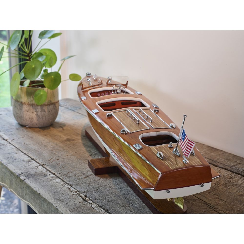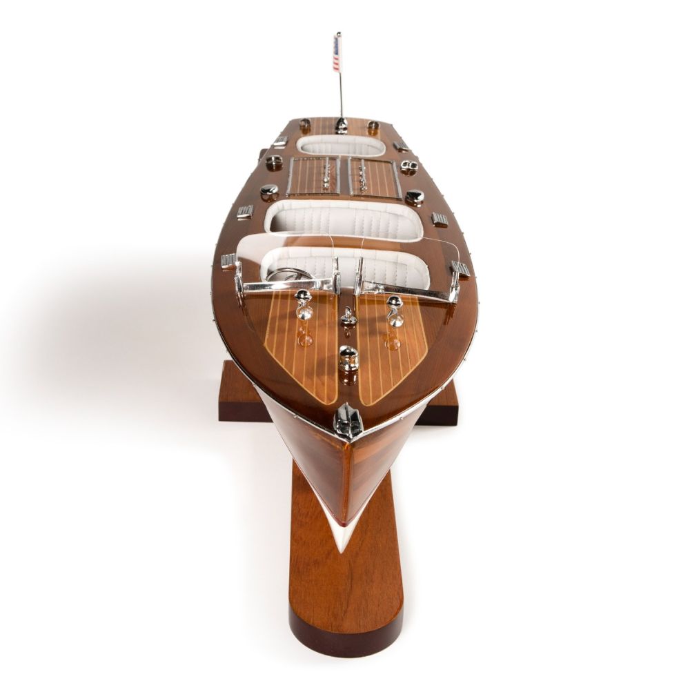 The throaty growl of that big engine built inside gleaming mahogany, rich leather, chrome trim. Leather padded seats displayed movie stars trying out the new bikini fashions. Husband number 3, 4, or 5 behind the wheel, decked out in spotless captain's finery. No Coast Guard was able to overtake these sleek twin-engine torpedo shaped racers. The curves, the looks, the excitement, the opulence!