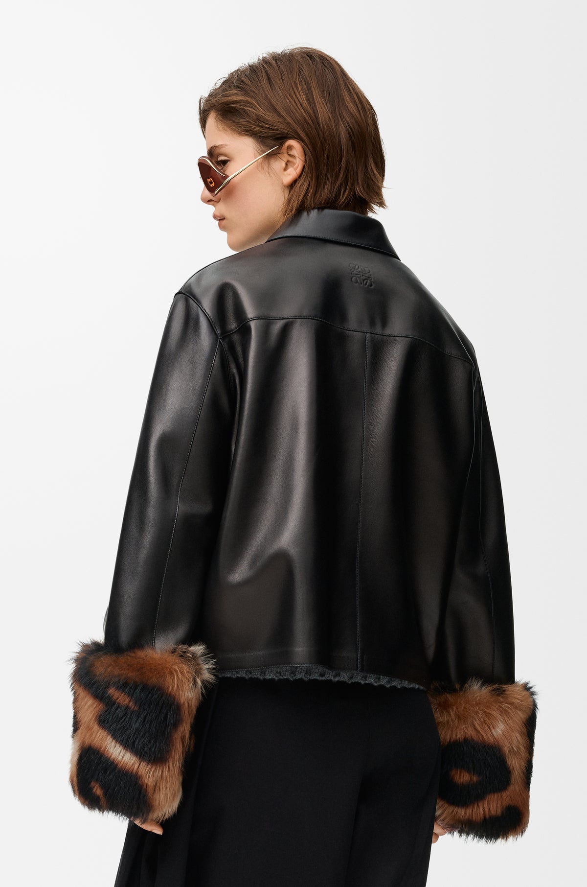 Jacket in lightweight nappa plongé lambskin featuring turn-up sleeves with detachable printed shearling cuffs.