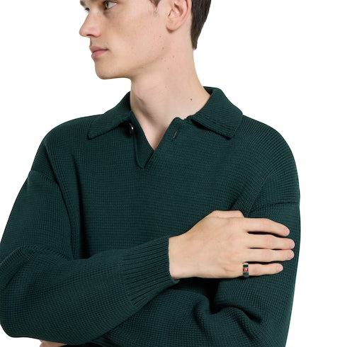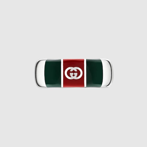 The House's silver jewelry collection continues to reinterpret emblematic motifs in sumptuous materials, intricate craftsmanship, and fresh hues, such as this wide ring with a cylindrical Web detail.