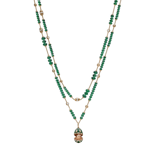 international conservation charity, Space for Giants as part of their Walk for Giants campaign in partnership with Gemfields. The one-of-a-kind transformable necklace features an 18k rose gold egg pendant, hand-painted in deep green guilloché enamel, which opens to reveal a miniature elephant cast... -