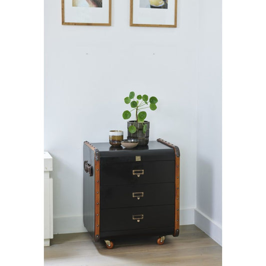 Trunk Table Clock, Quartz, 80mm, Brass, Monogram