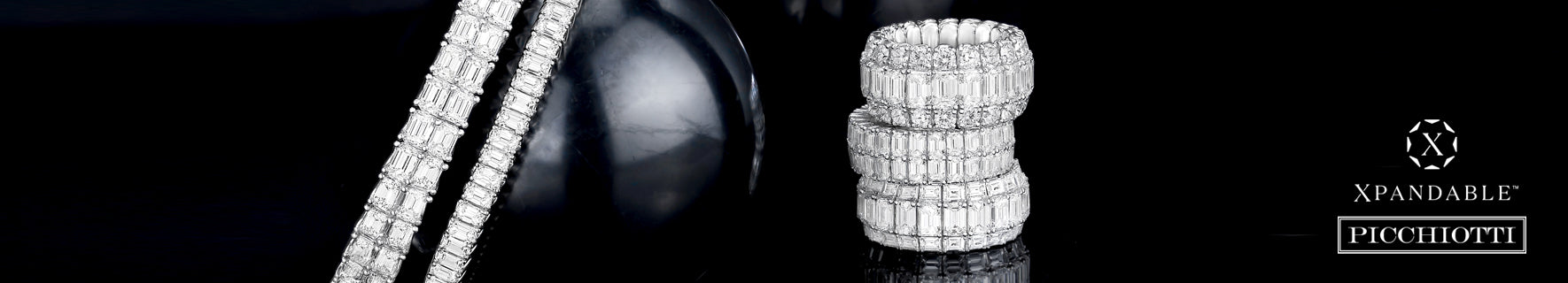 Xpandable bracelet with diamonds set in 18K white gold. CARAT WEIGHT Round diamonds 24.62 ct SIZE Bracelet width 1cm Inner diameter 55 mm -