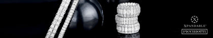 Xpandable band with white diamonds set in 18K white gold. CARAT WEIGHT Round diamonds 6.82 ct SIZE Band width 1 cm FINGER SIZE From 13 to 24 European size -