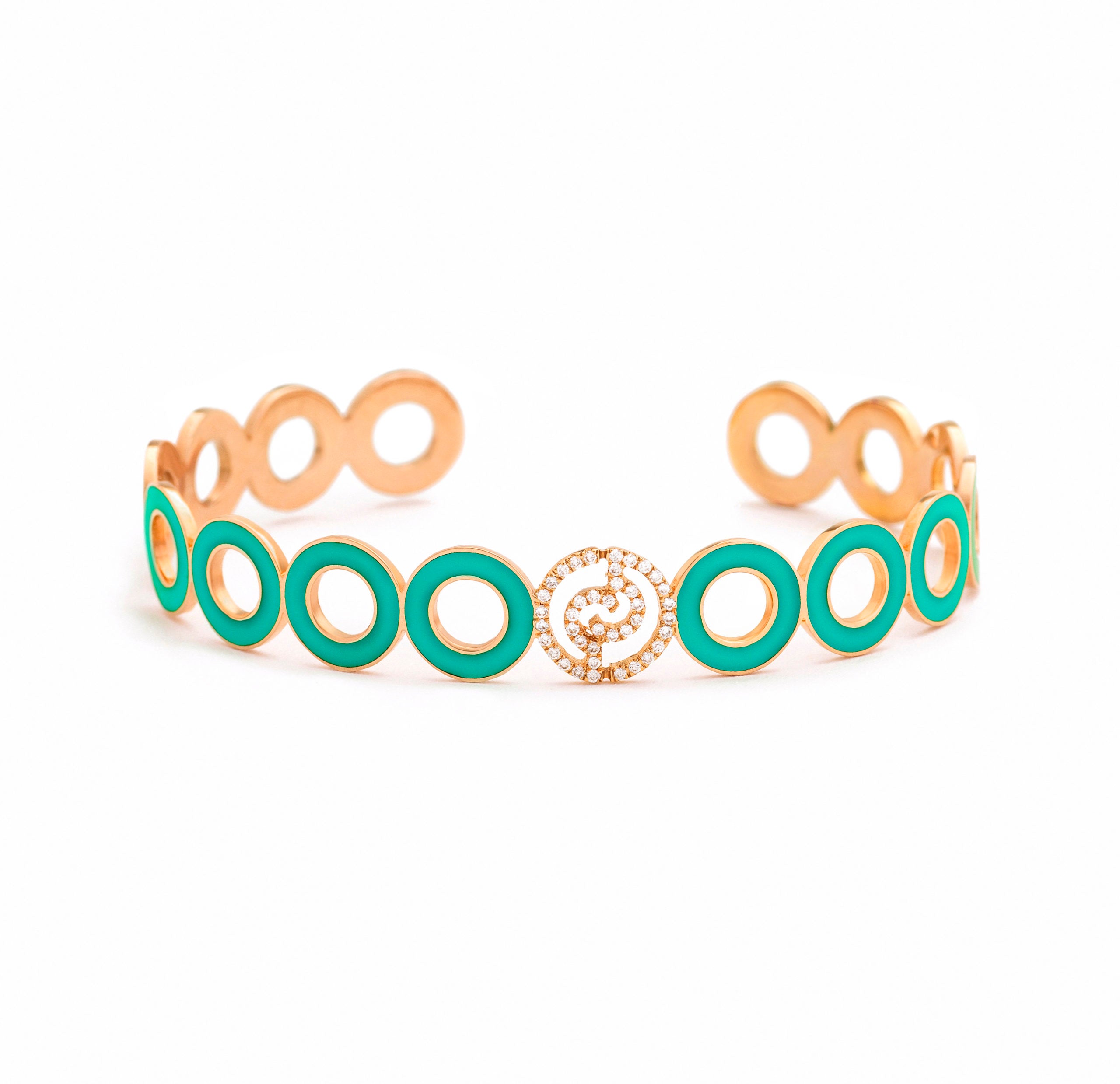 Open Circle Logo Bracelet with White Diamonds and Blue Enamel.