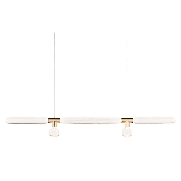 Cipher collection is a juxtaposition of heritage techniques and contemporary form. Its delicate hand-blown crystal cylindrical pieces are cut with clean, clear lines. Light emits only from connection points and the sources are ingeniously hidden to soften the overall effect. With components arranged in series and joined by polished champagne-gold finished connections, CipherClear / Horizontal L