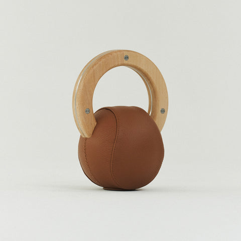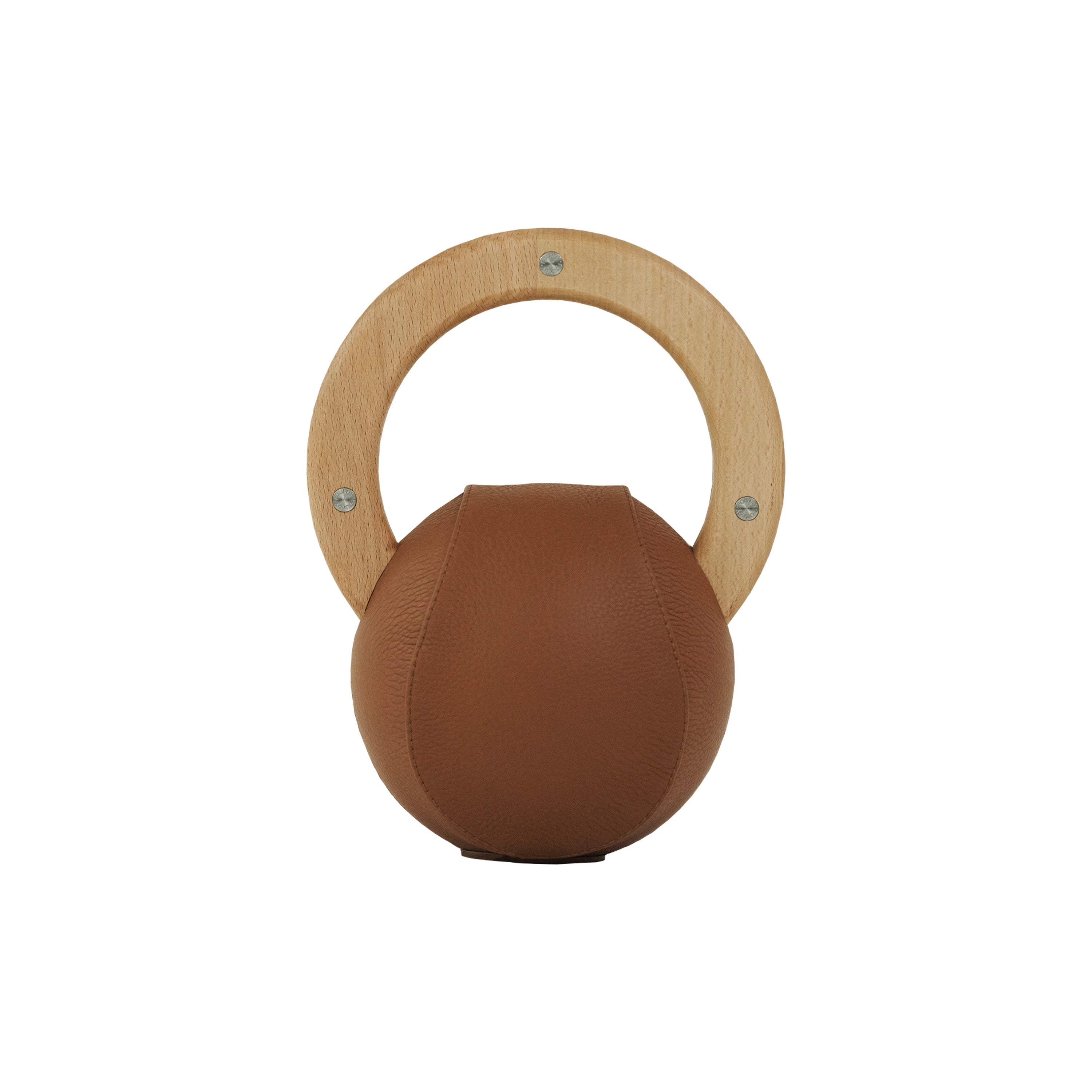 Our ‘Essential Kettlebell’ is constructed of a wood handle and Odessa calf leather. It has a warm woody color and a sophisticated design with a softly curved stitch handcrafted on the leather. Choose from beech and oak and from classic to vivid colors to match your space.