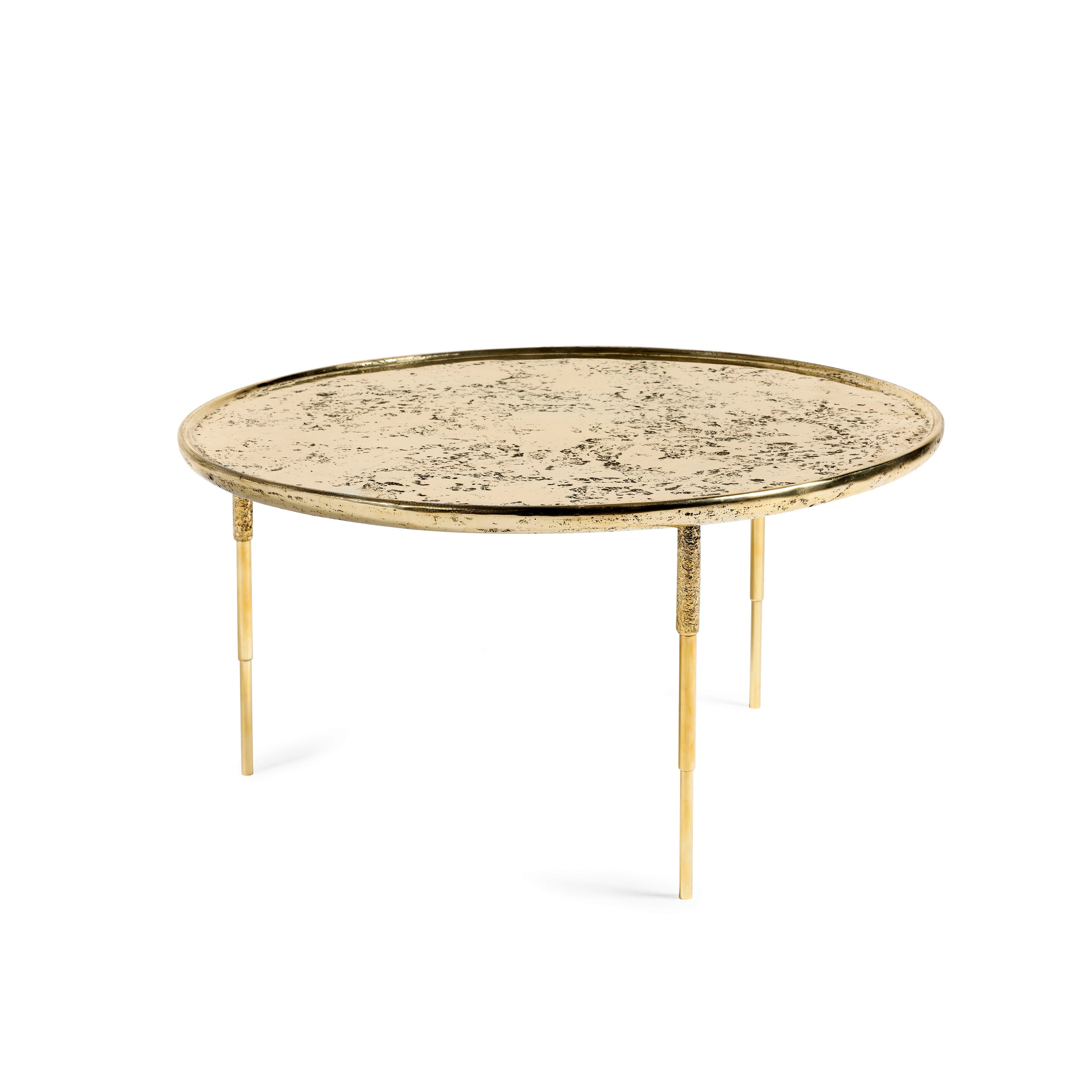 Side table Heron is a very refined element with a light and versatile design completely made of metal. The melted bronze parts of the base are realized with a classic foundry technique, which consists in casting liquid metal into a mold made of special sand, called foundry sand, which has the shape of the piece to be made.