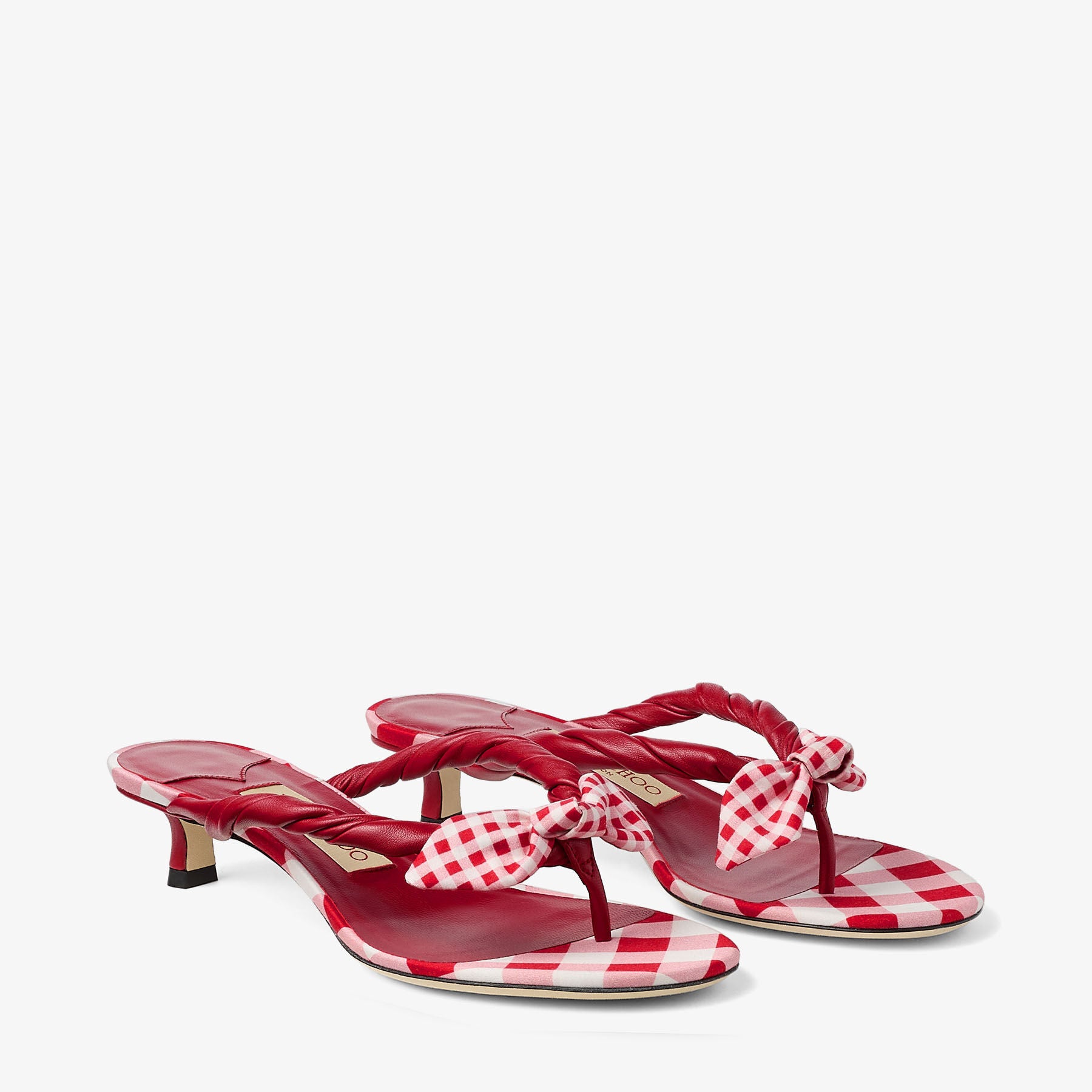 Inspired by the foulard wrapped around a bag handle, the Liss mule sandal reinterprets this detail in the form of a twisted upper. Presented in ruby red gingham cotton, the design is finished with a soft bow and set on a low 35mm heel with a softly padded insole.