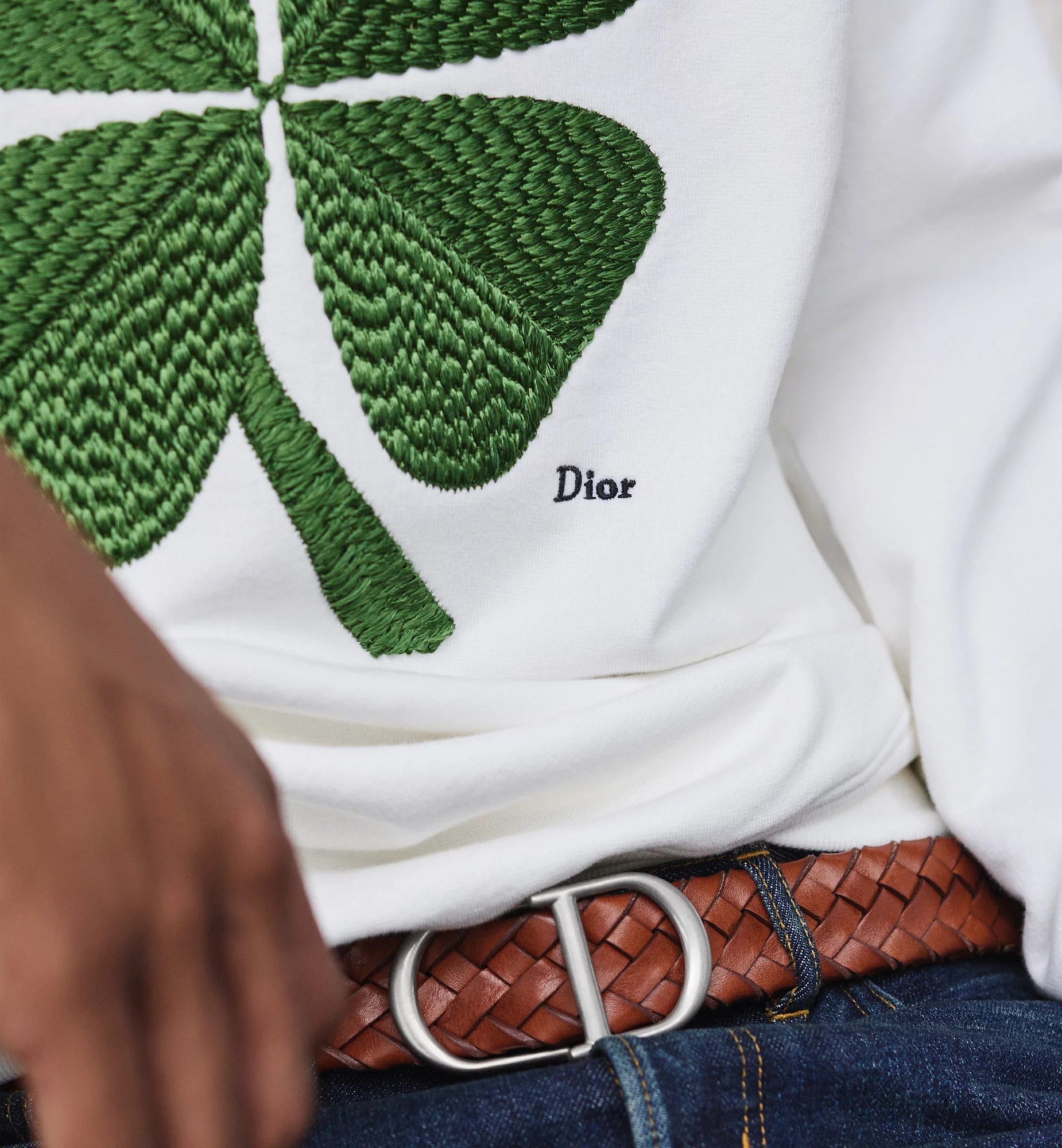 Jonathan Anderson breathes new life into one of the House's iconic symbols and lucky charms with the Dior Clover motif. Crafted in white cotton fleece, the sweatshirt is characterized by the Dior Clover embroidery emblazoned on the front. Paired with jeans from the collection, it will become the defining piece of favorite looks.
