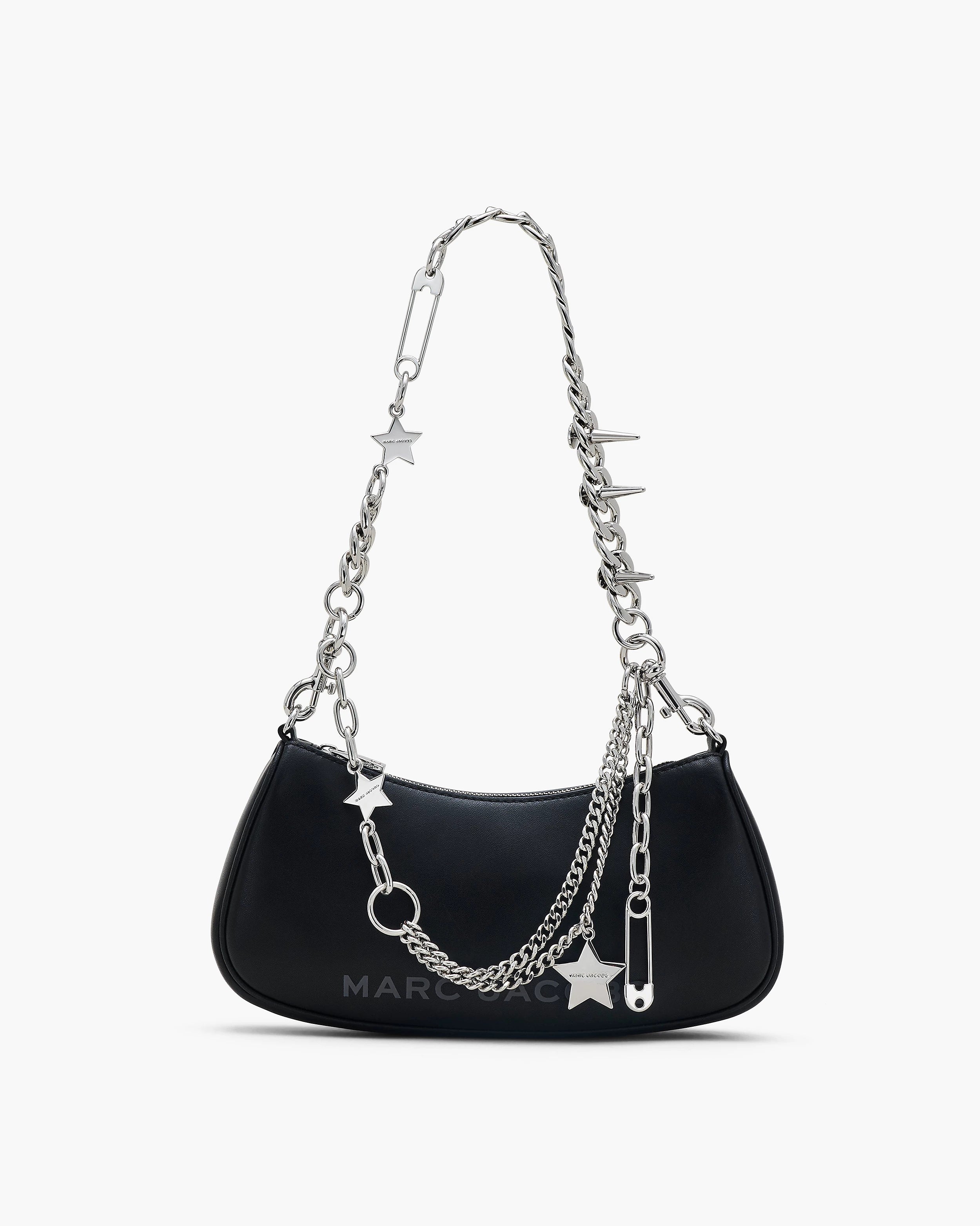 Stylishly playful and perpetually youthful, the Star Charm Shoulder Bag exudes Marc's unmistakable spirit with a novel silhouette designed for comfortable over-the-shoulder styling. Crafted in smooth leather, this handbag features one removable leather shoulder strap, and a charm-adorned multi-layered chain strap, which can be attached for elevated over-the-shoulder styling, or as draping decorative accent.