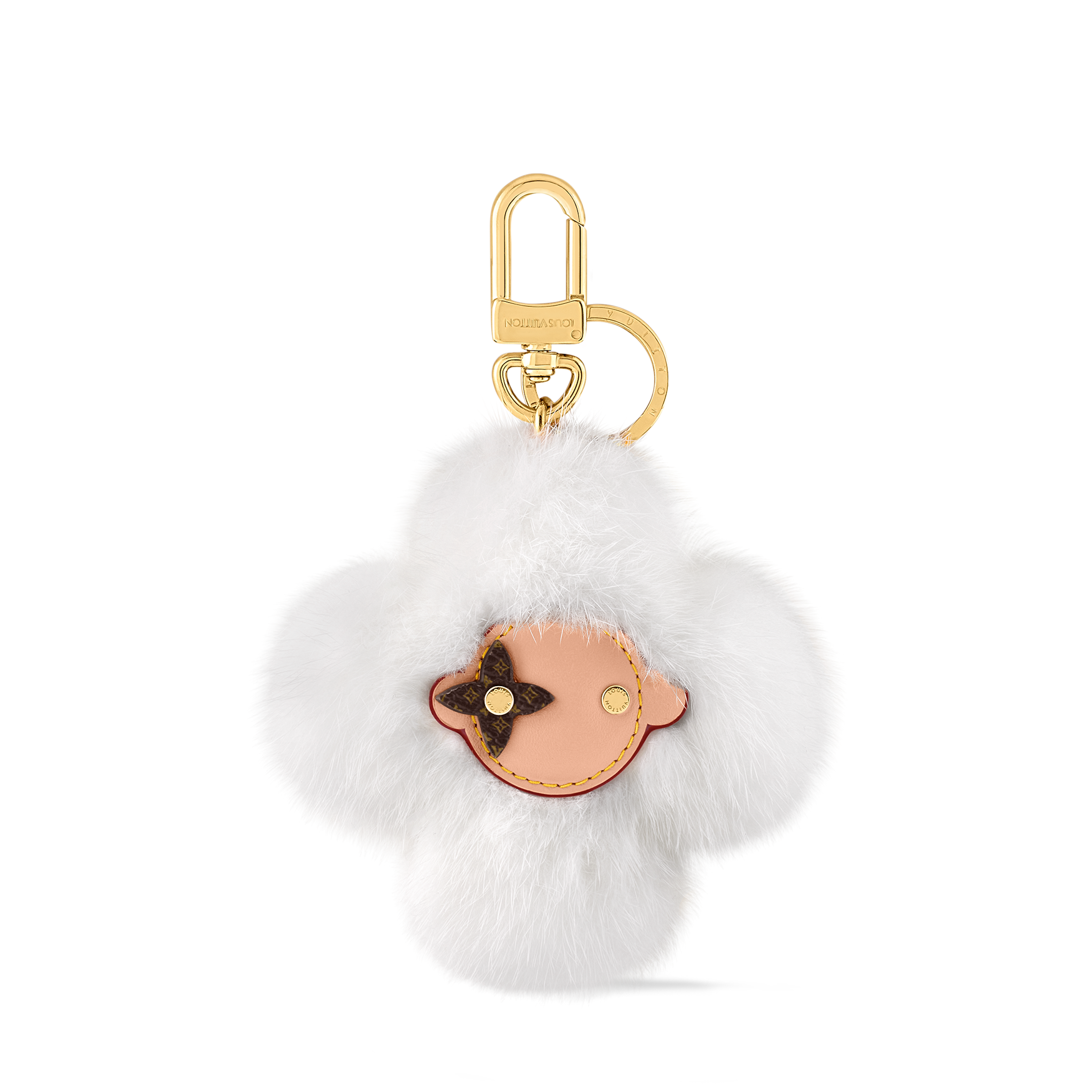 Louis Vuitton’s Monogram-inspired mascot comes bundled up for winter in the Vivienne Fur Key Holder and bag charm. Vivienne’s adorable face, with her Monogram Flower eye, is styled in leather surrounded by an ethereal puff of colourful mink fur. A standout accessory with a bold and original House look.