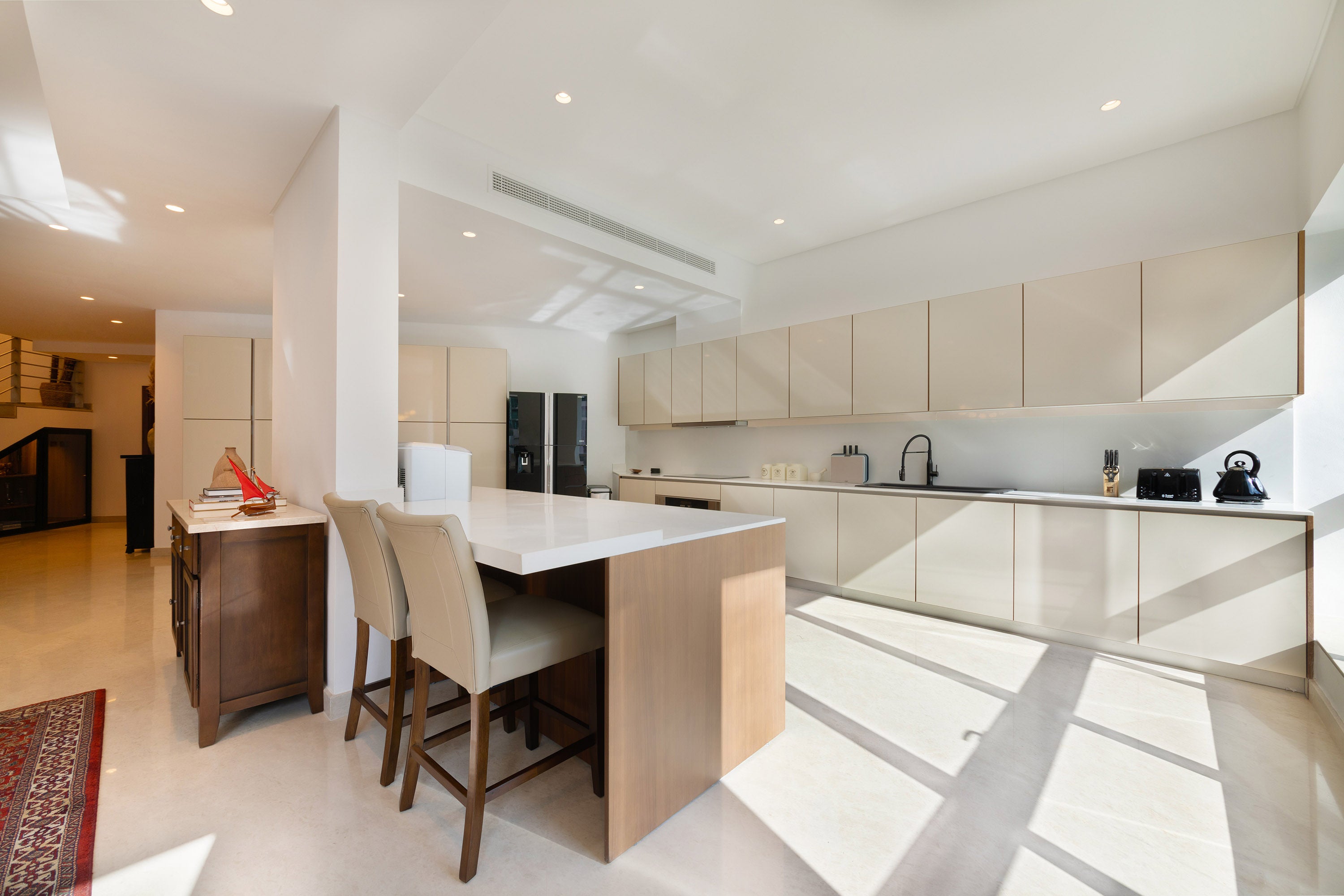 The open-plan kitchen is fully equipped with everything you need to prepare delectable dinners for you, your family, and friends. Each hall, stairwell, and room is designed with no detail spared, such as traditional rugs, elegant chandeliers, greenery, wall hangings, and premium marble flooring.