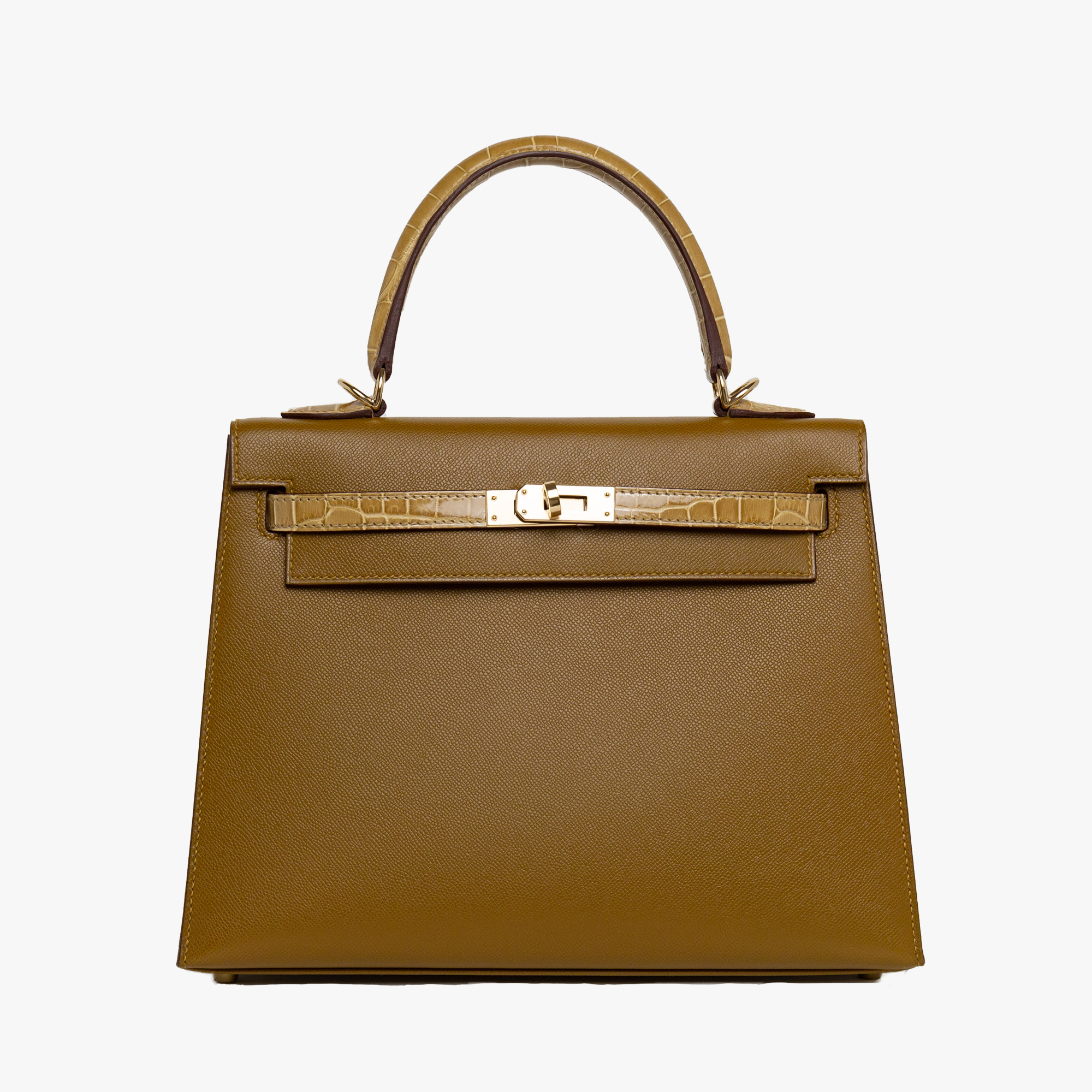 25cm Kelly Touch Bronze D'or Veau Madame With Sable Shiny Nilo Croc With Permabrass Hardware