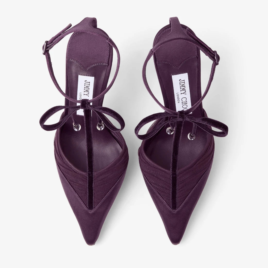 The Afia pump is crafted from lustrous satin and elegantly ruched tulle, wrapping the foot in soft folds. A T-bar strap combined with a slender ankle tie, offers a delicate yet supportive silhouette. Teardrop crystal beads add subtle movement and sparkle. Set on a 100mm stiletto heel and finished with a pointed toe, it transforms a timeless silhouette with sculptural accents.