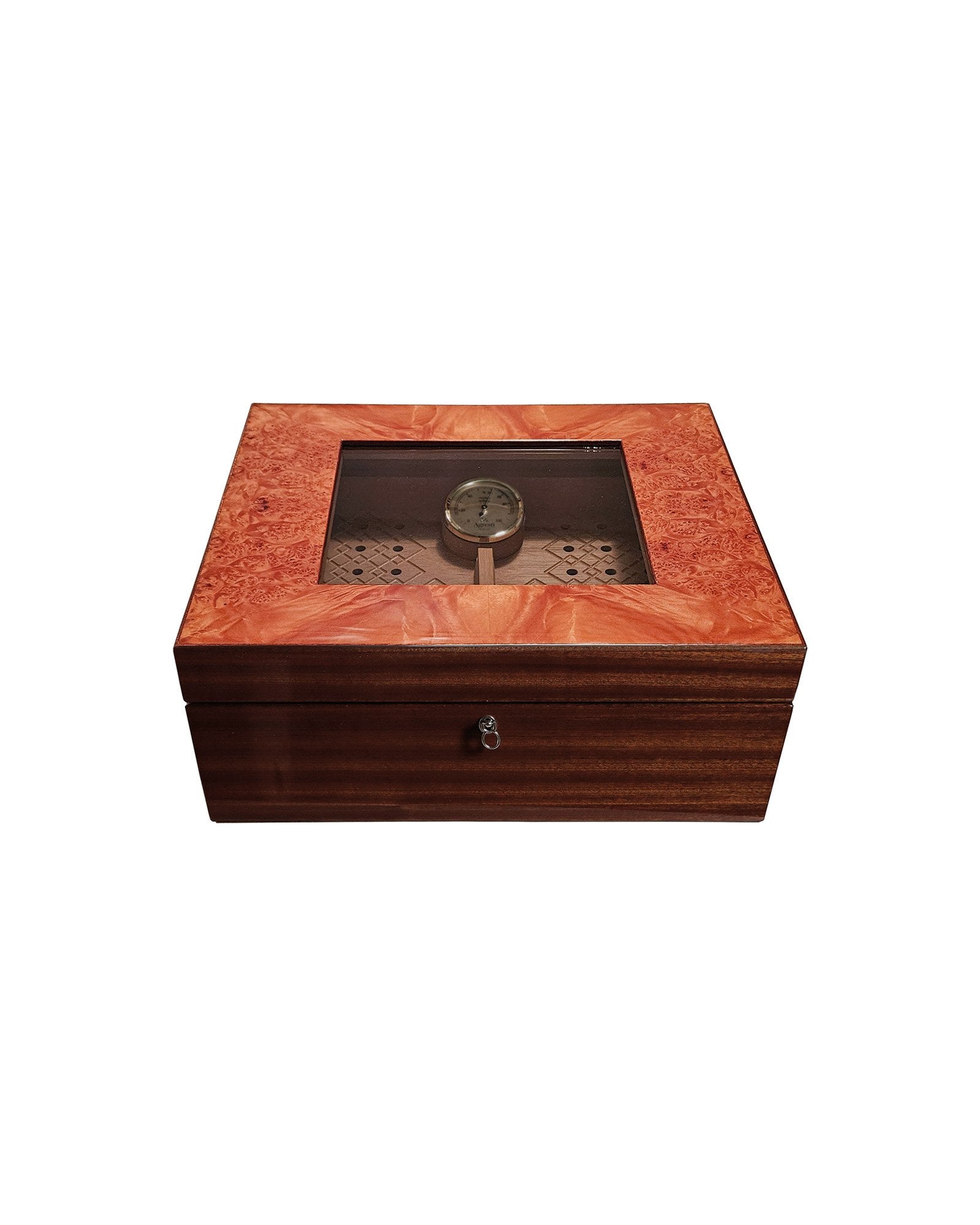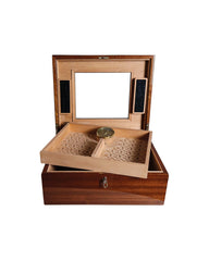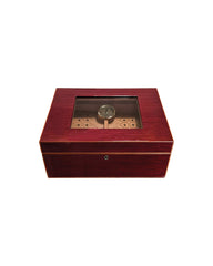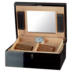 Humidor for 100 cigars in ebony polished. Cedar lining. Two humidification units and hygrometer. Removable tray.