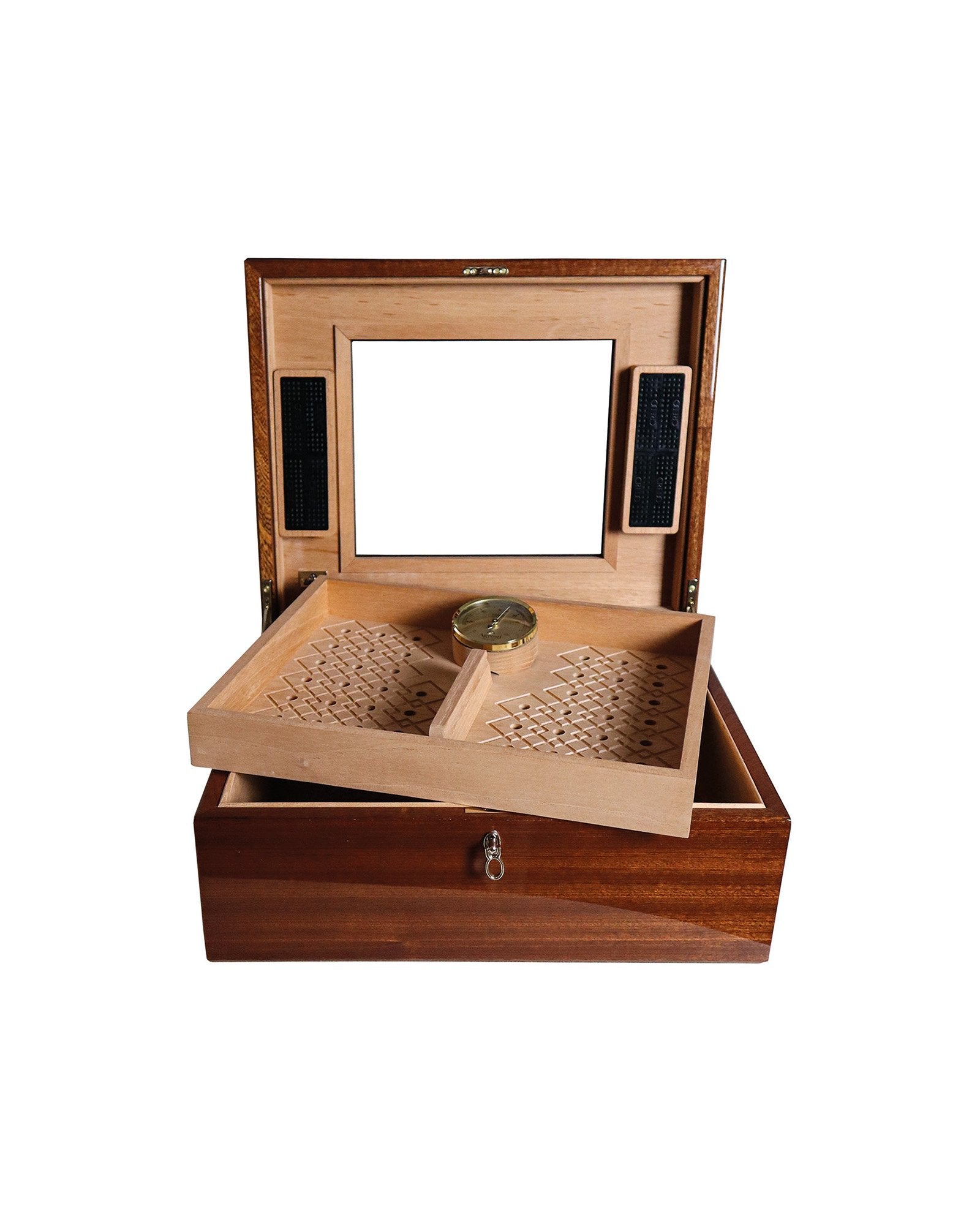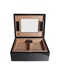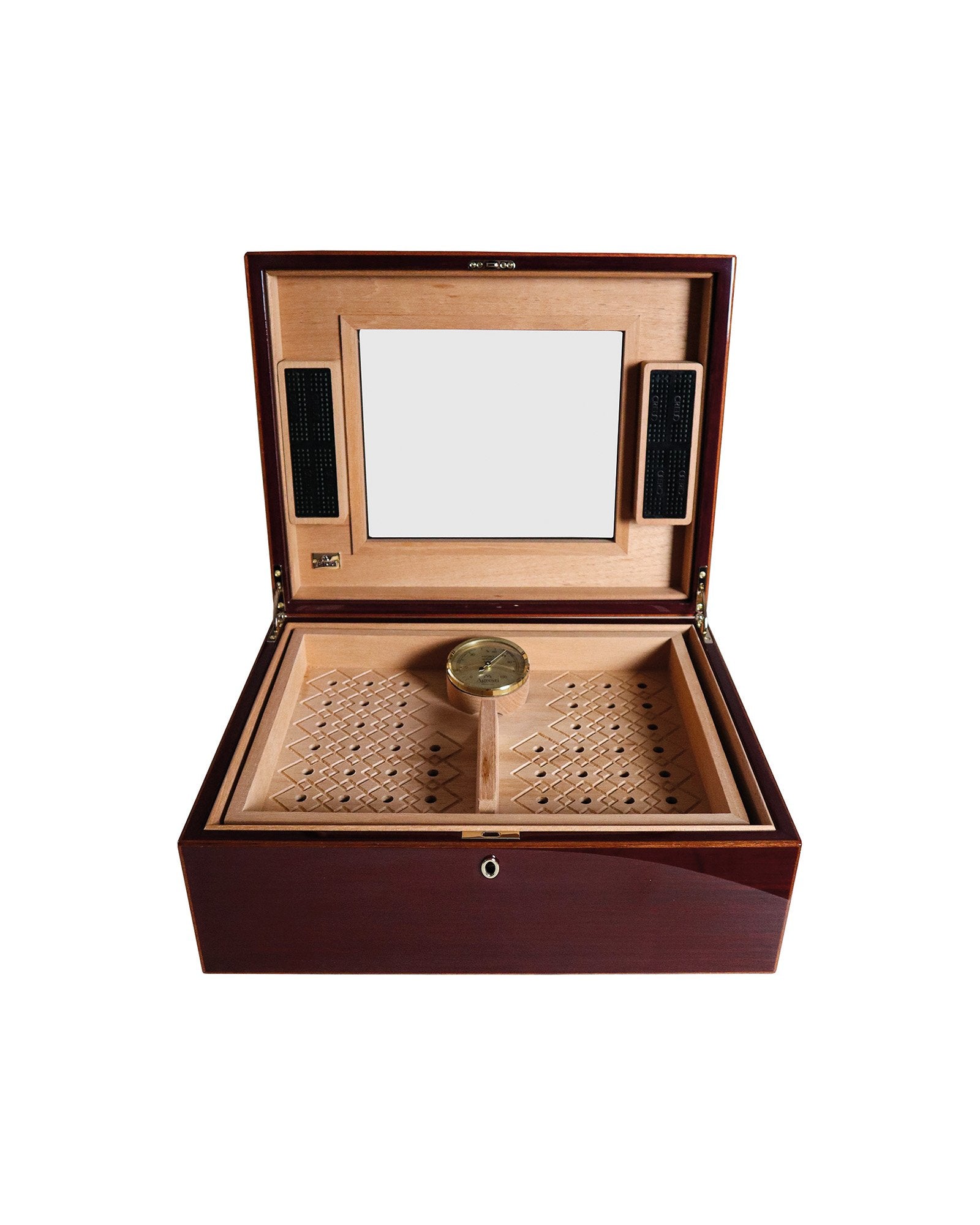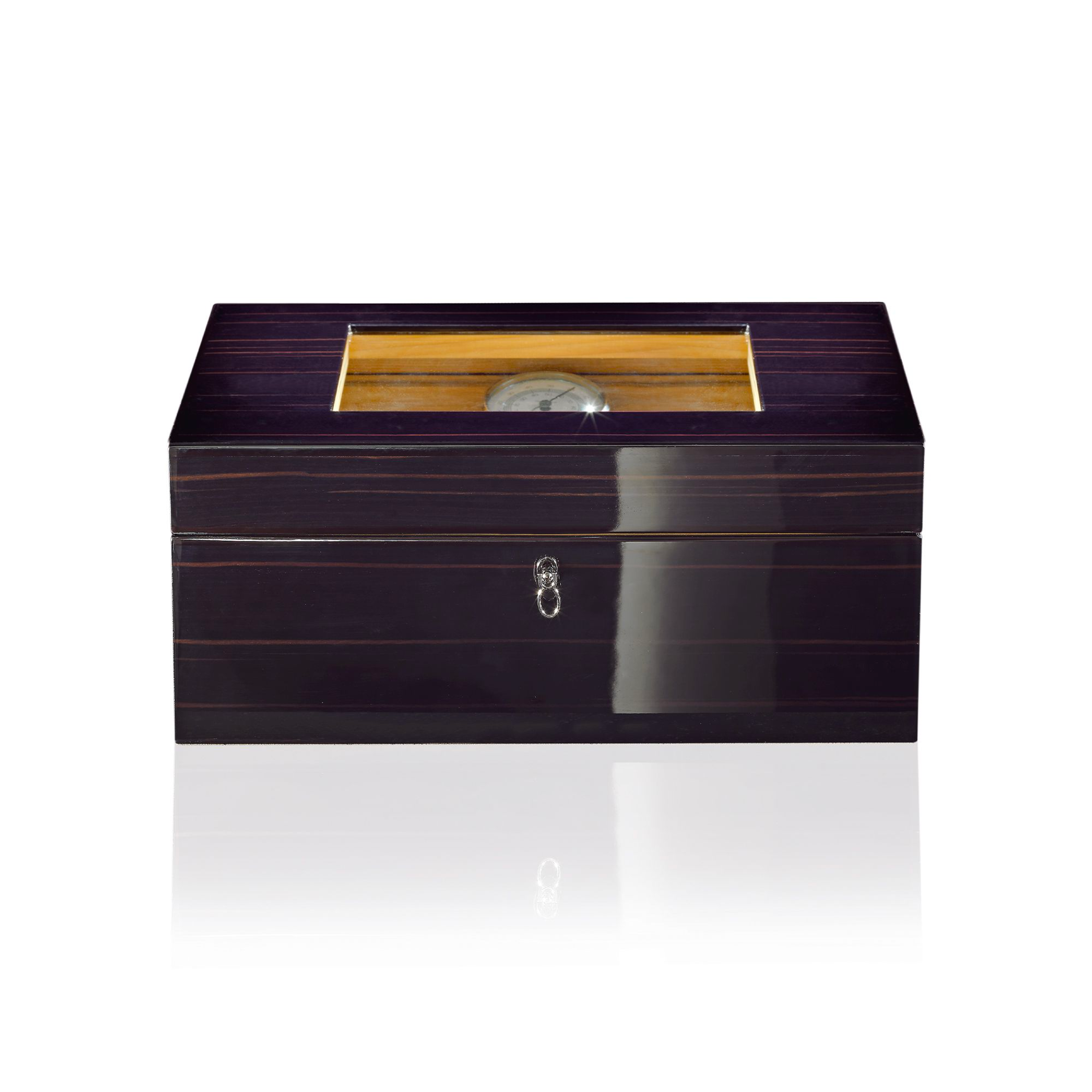 Take your time, enjoy life, treat yourself well. Polished ebony humidor for 100 cigars with two humidification units and hygrometer. Take care of your passions.