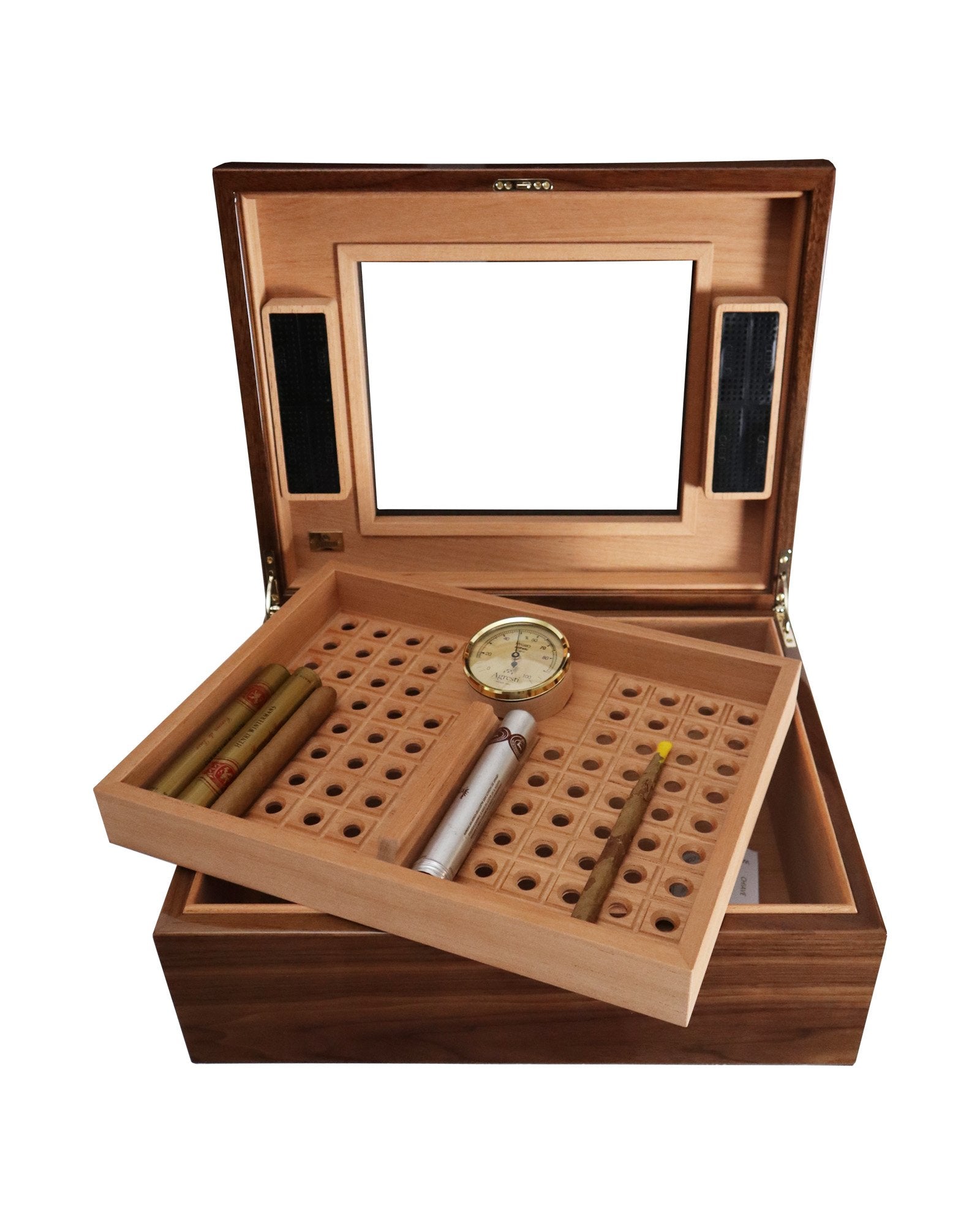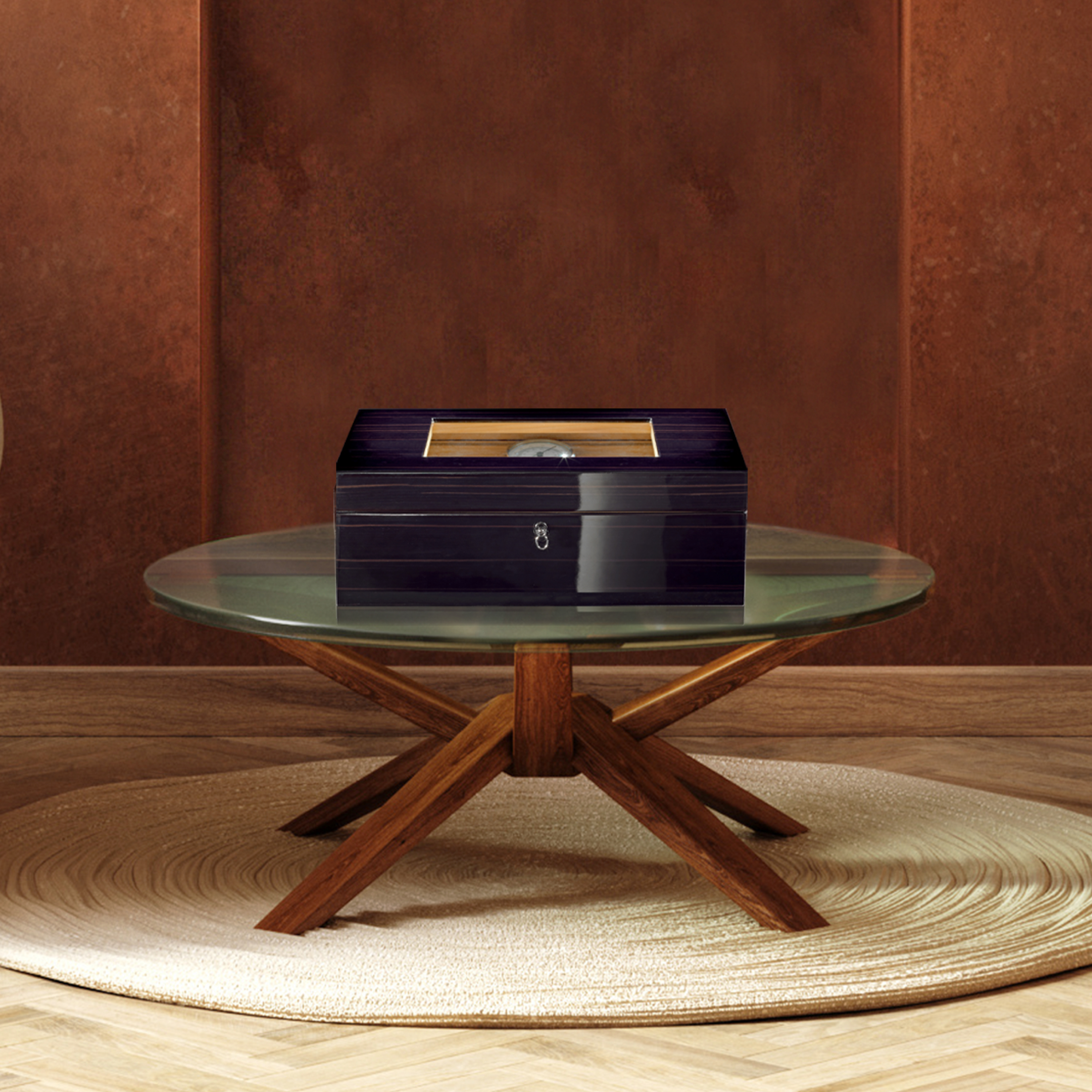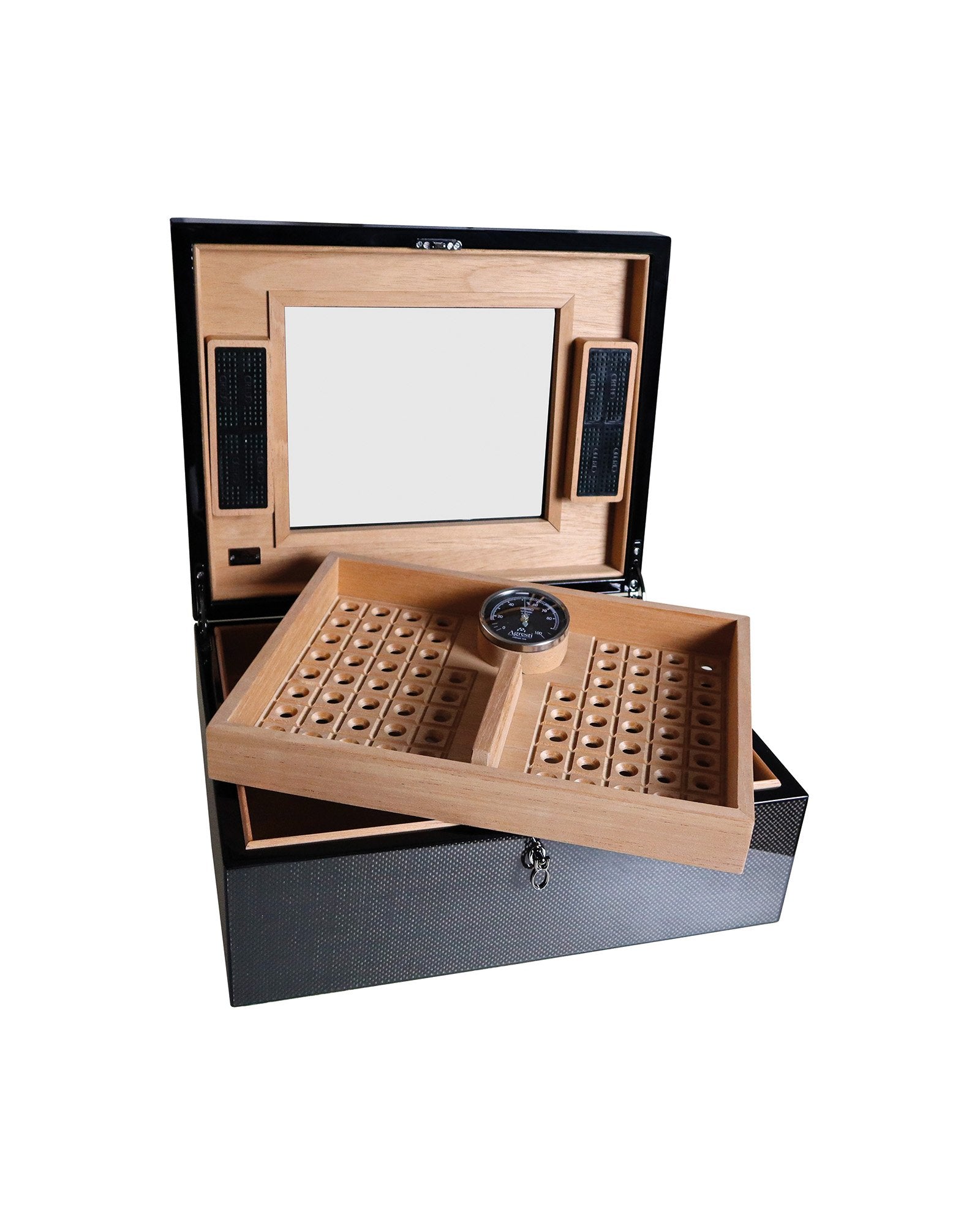 Take your time, enjoy life, treat yourself well. Polished ebony humidor for 100 cigars with two humidification units and hygrometer. Take care of your passions.