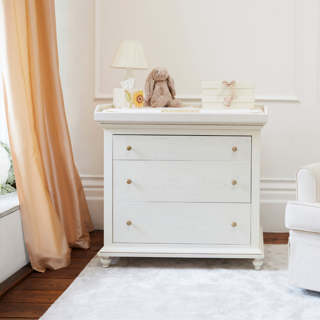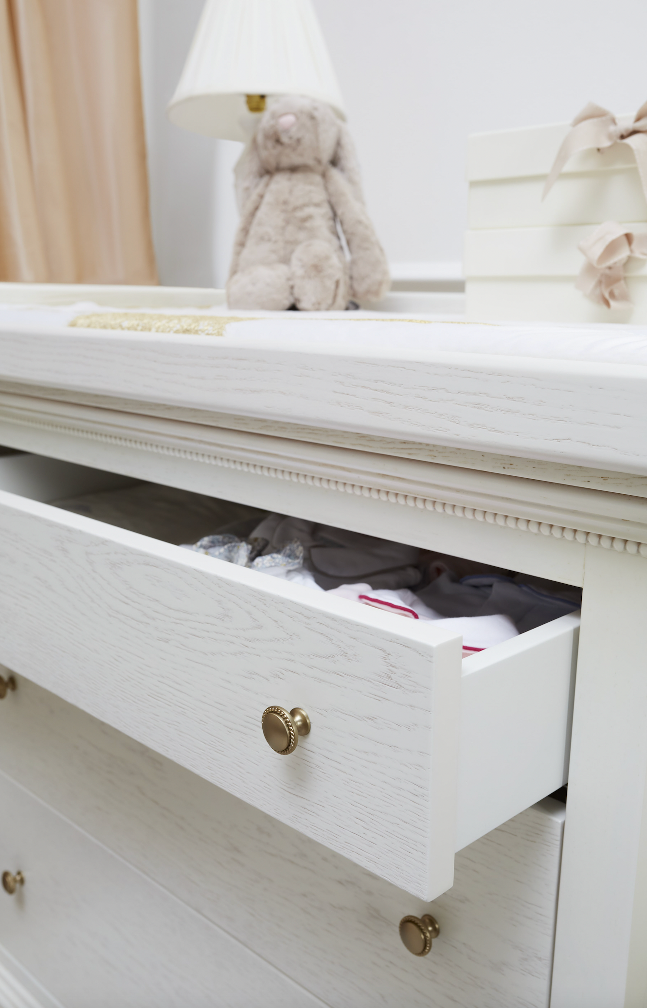 This regal, regency-style Changing Unit with elegant brass knobs is the perfect addition to your baby's nursery. It's the perfect way to up the sophistication in your little one's room. Feel the top-notch quality of the wood and luxurious finishes that will rise to every occasion.