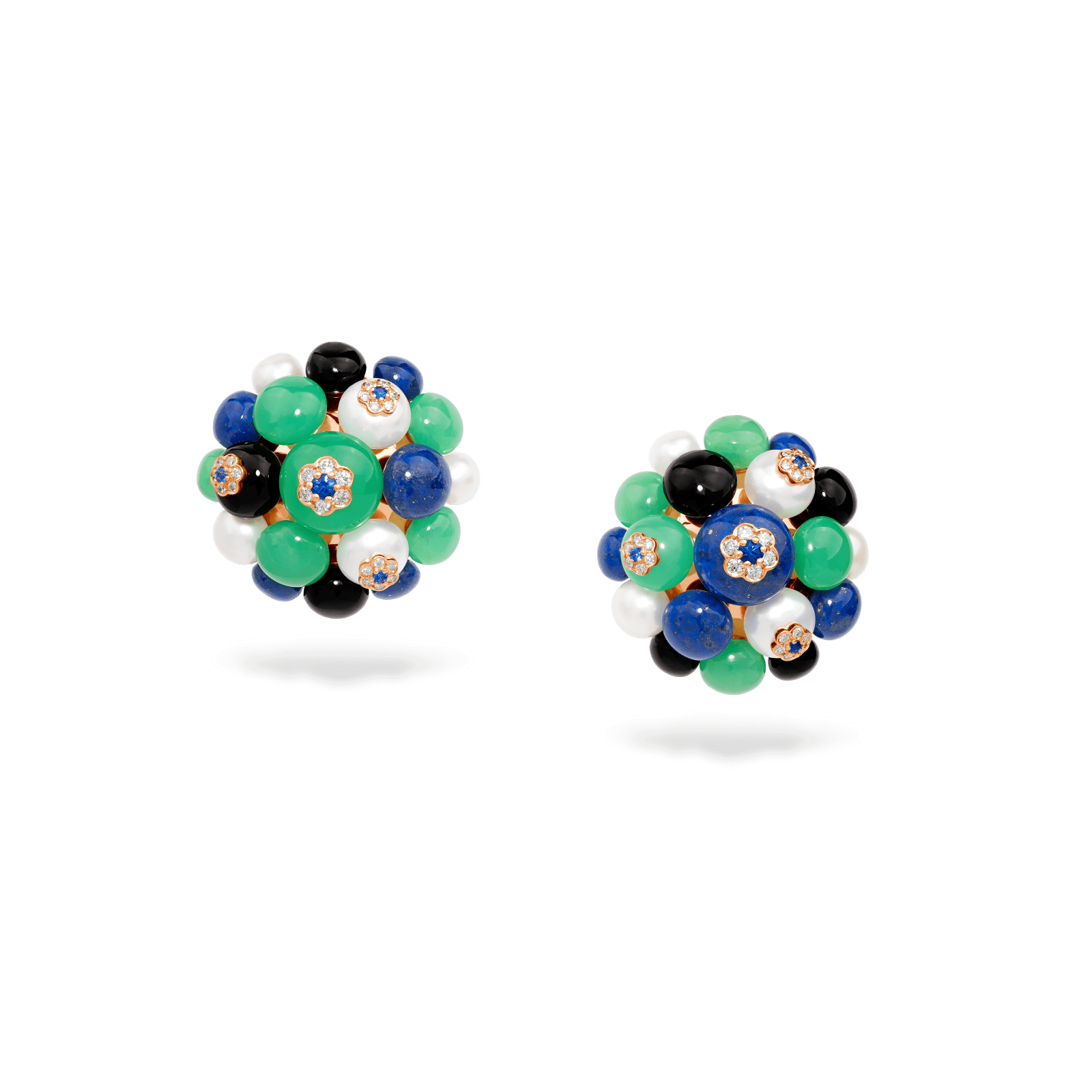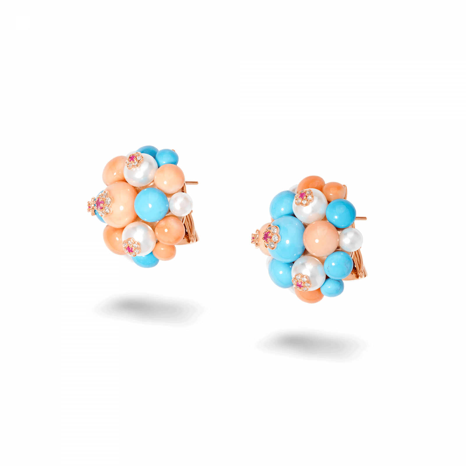 Berry Cluster Earrings with a medley of semi-precious stones, white diamonds and pink or blue sapphires set in 18ct rose gold.