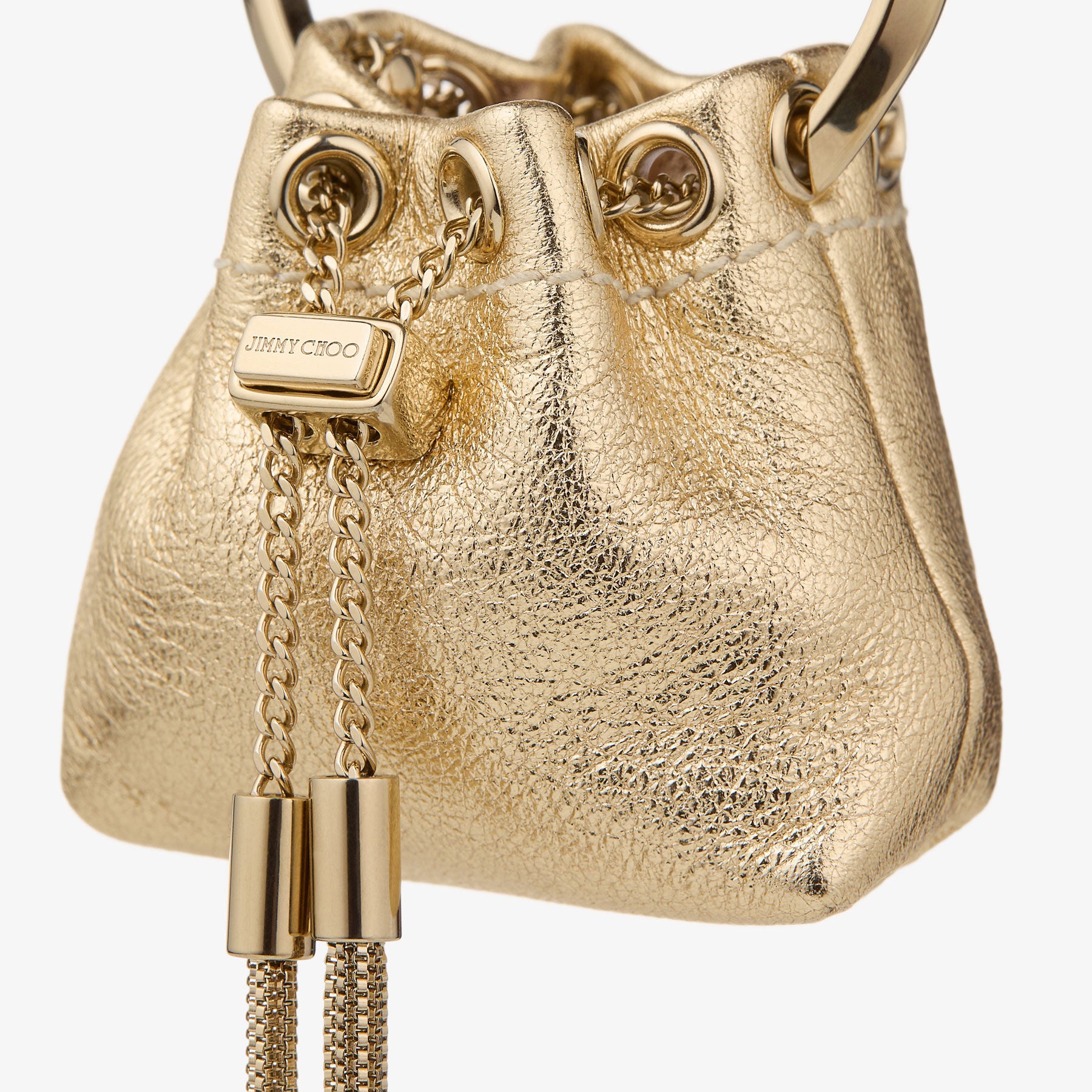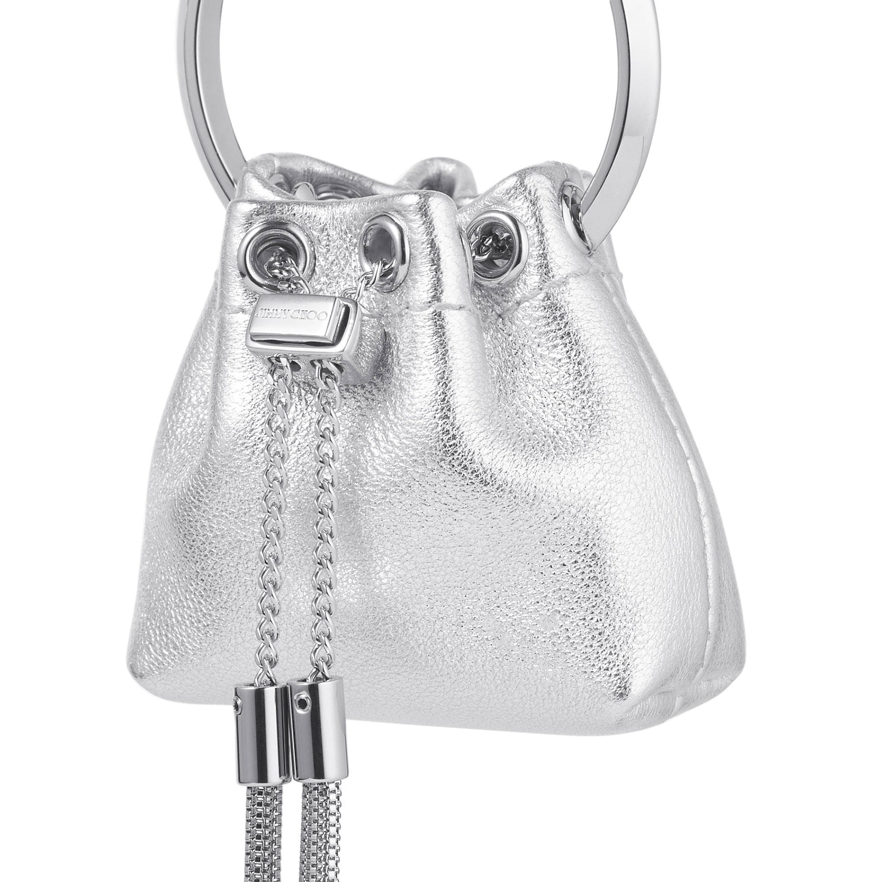 A playful nod to one of our most iconic silhouettes, the Bon Bon Mini Charm is crafted in shimmering metallic nappa leather and finished with a polished metal top handle. Designed to clip onto your favourite bag or keys, it brings a touch of Jimmy Choo glamour in miniature form.