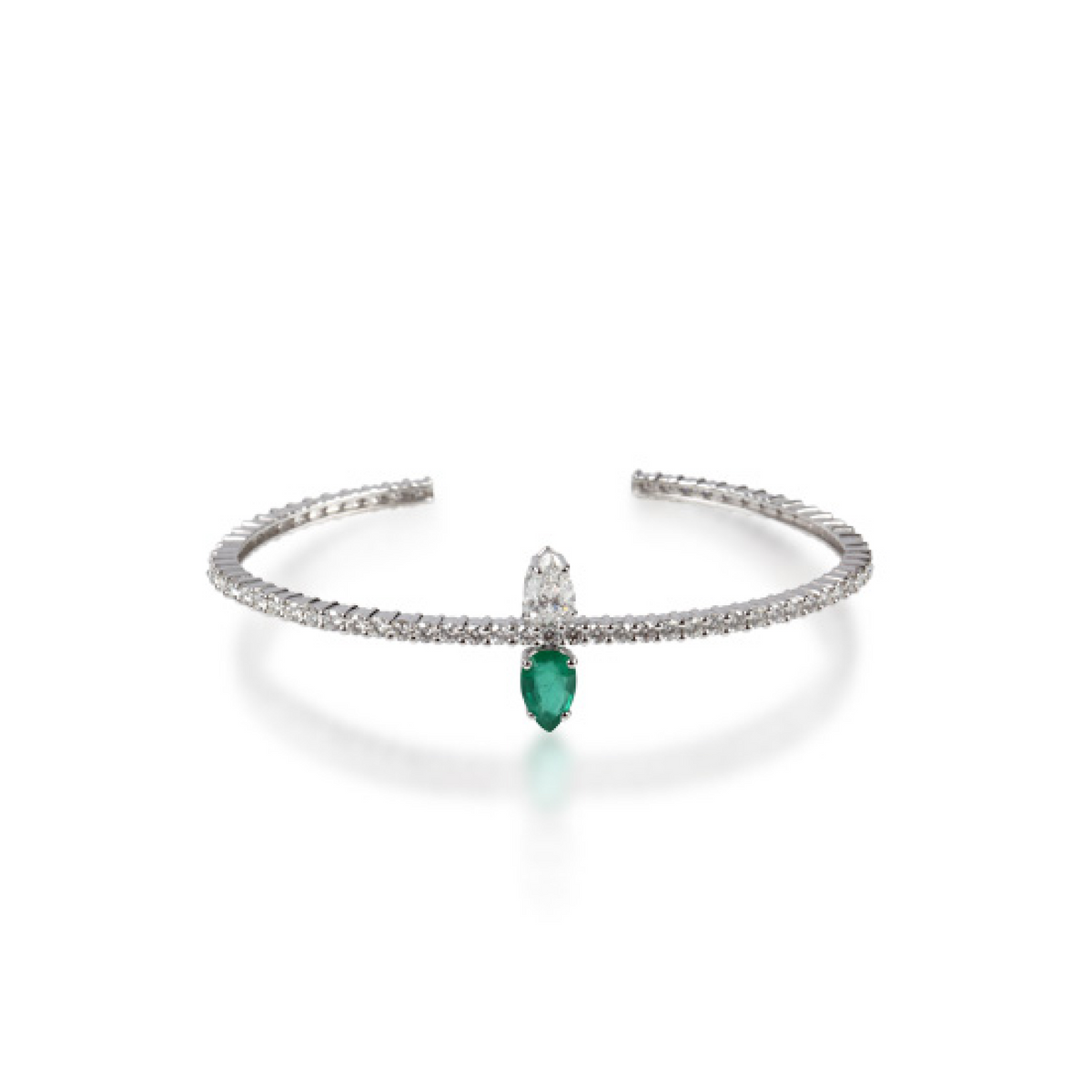 BRACELET BANGLE ALL SET IN WHITE DIAMONDS WITH 1 PEAR EMERALD AND ONE PEAR WHITE DIAMONDS