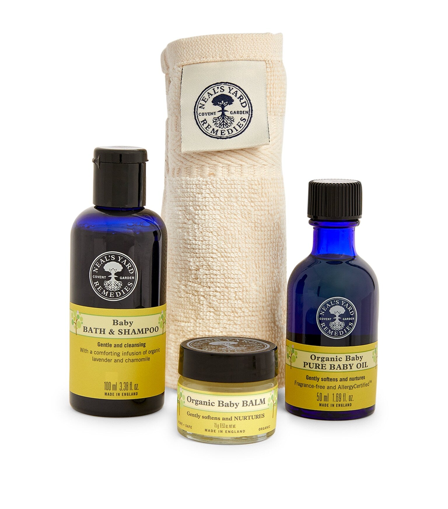 From the delightful world of Bumbles & Boo, the Contemporary New Baby Hamper will give newborns and new parents a thoughtful collection of gifts, all presented in a wicker hamper. A selection of toys awaits, a sumptuously soft bear and rainbow rattle to keep baby entertained, as well as a selection of patterned swaddles. Also, discover a collection of baby Neal’s Yard shampoo, oil and balm, to soothe your little one’s delicate skin; and don’t forget the keepsake book to treasure all their first moments.