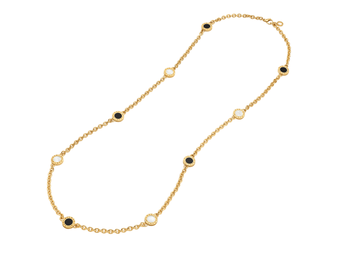 Bvlgari Bvlgari 18 kt yellow gold sautoir set with mother-of-pearl and onyx elements.
