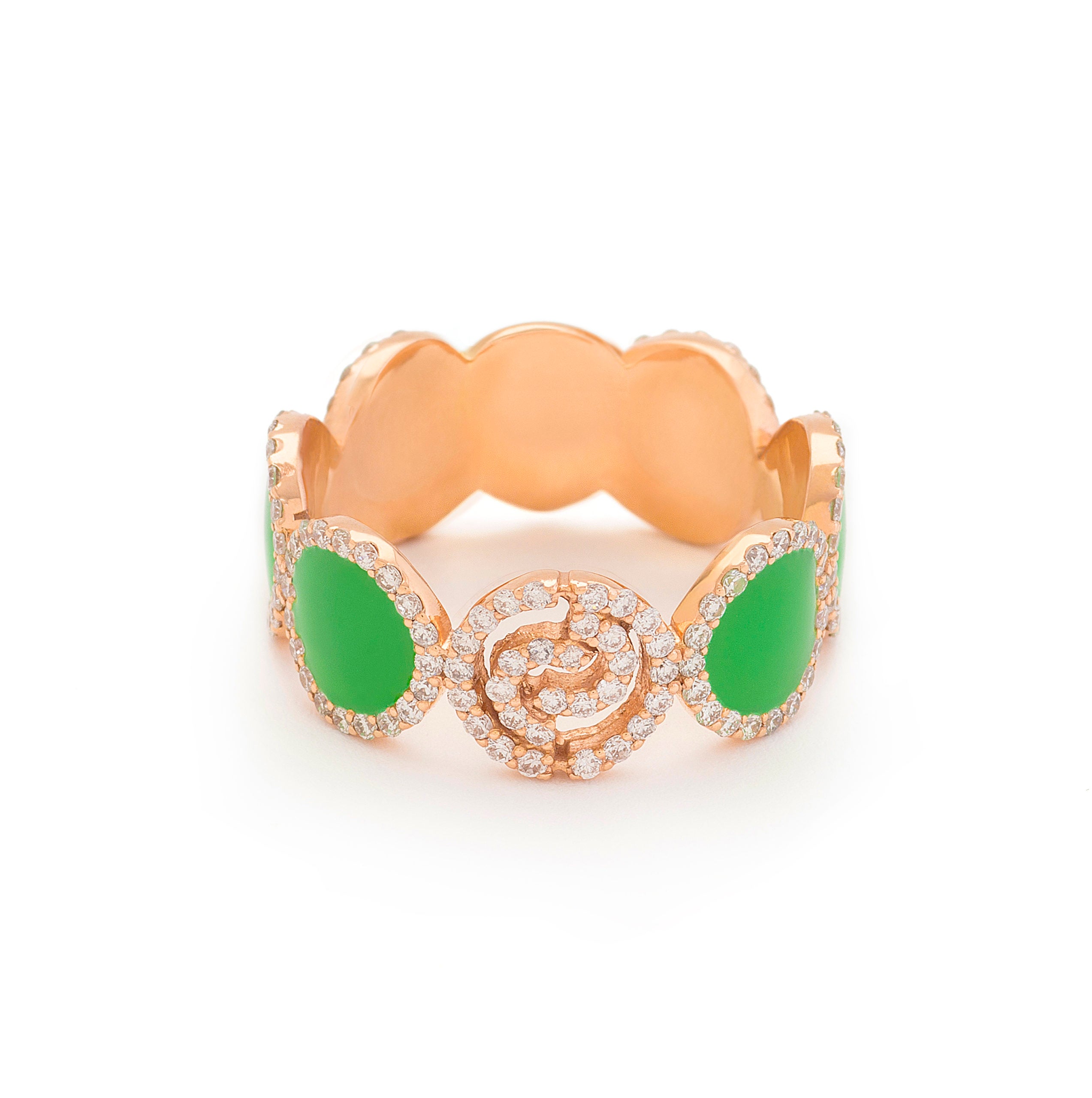 Full Diamonds Circle Logo Ring with Green Enamel.