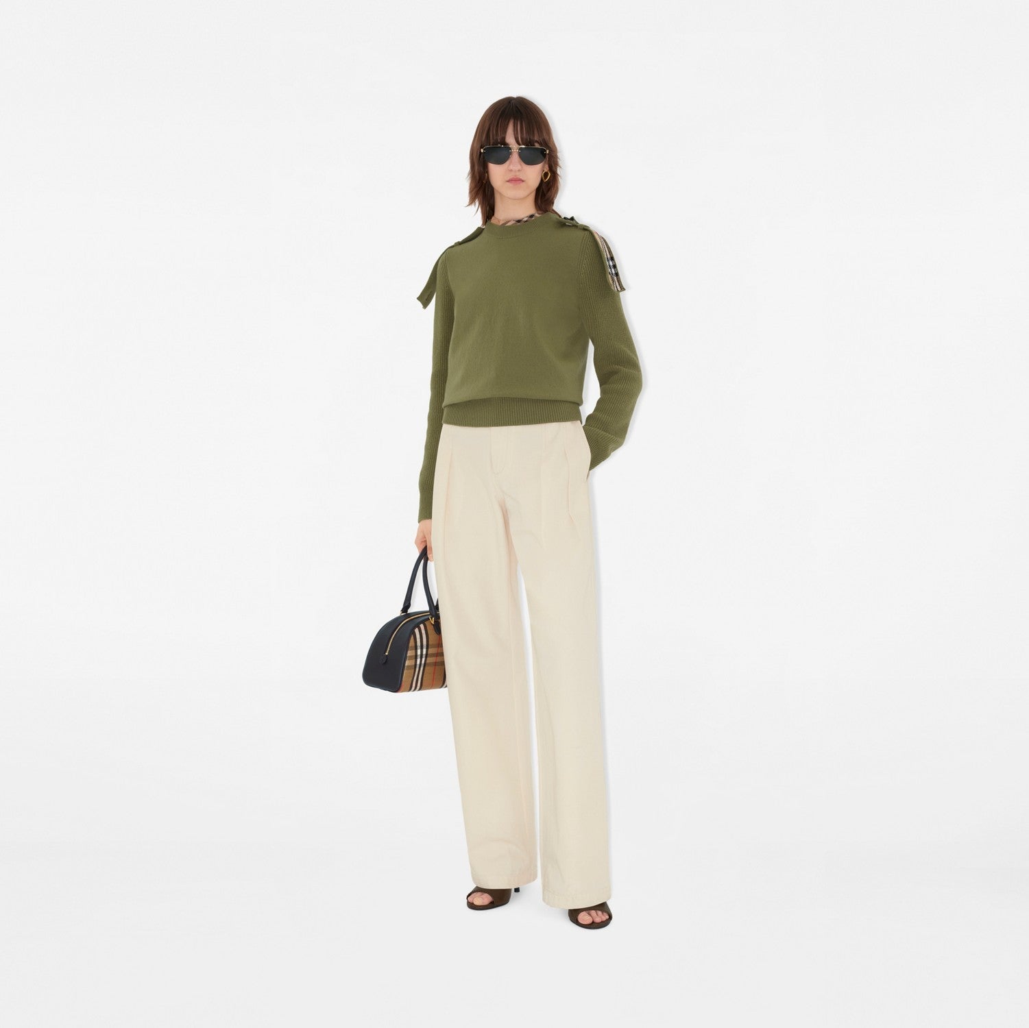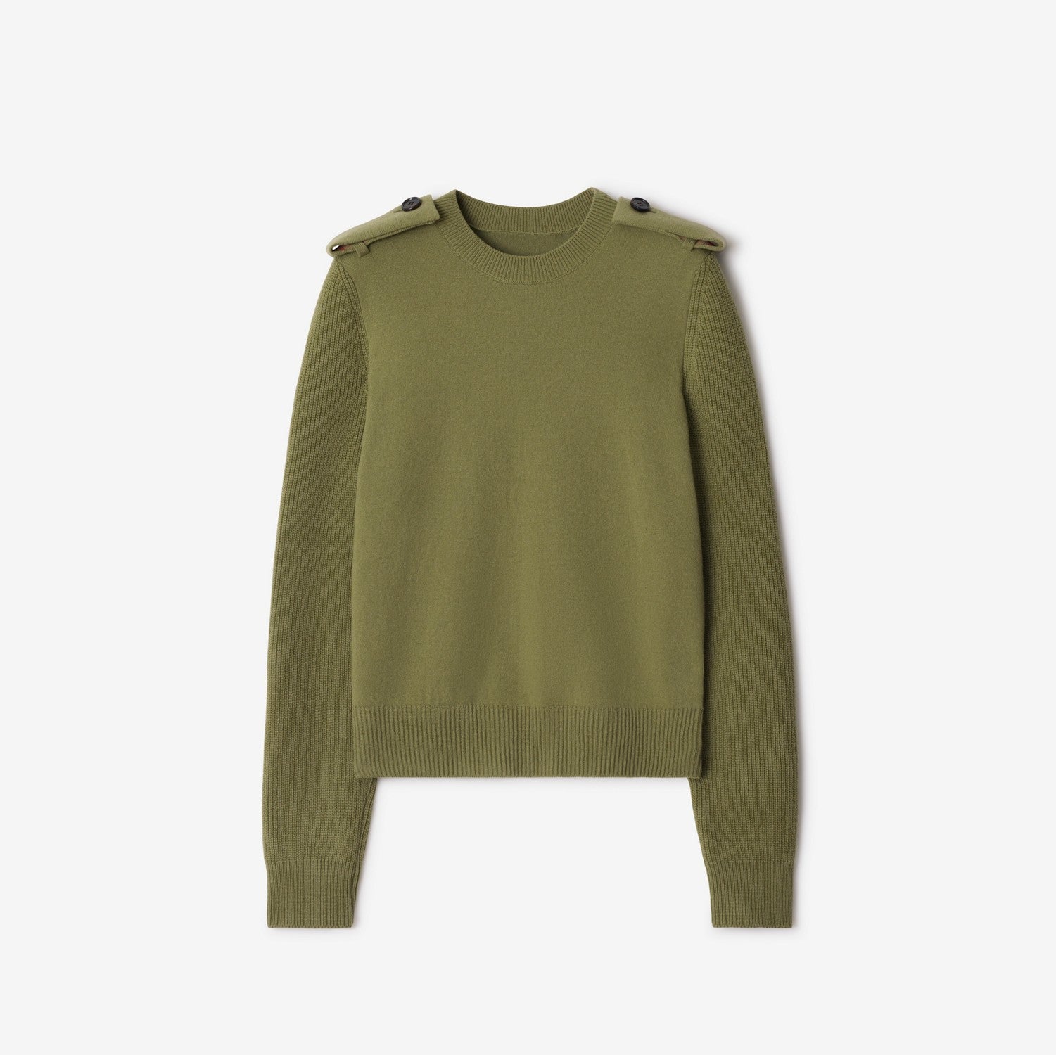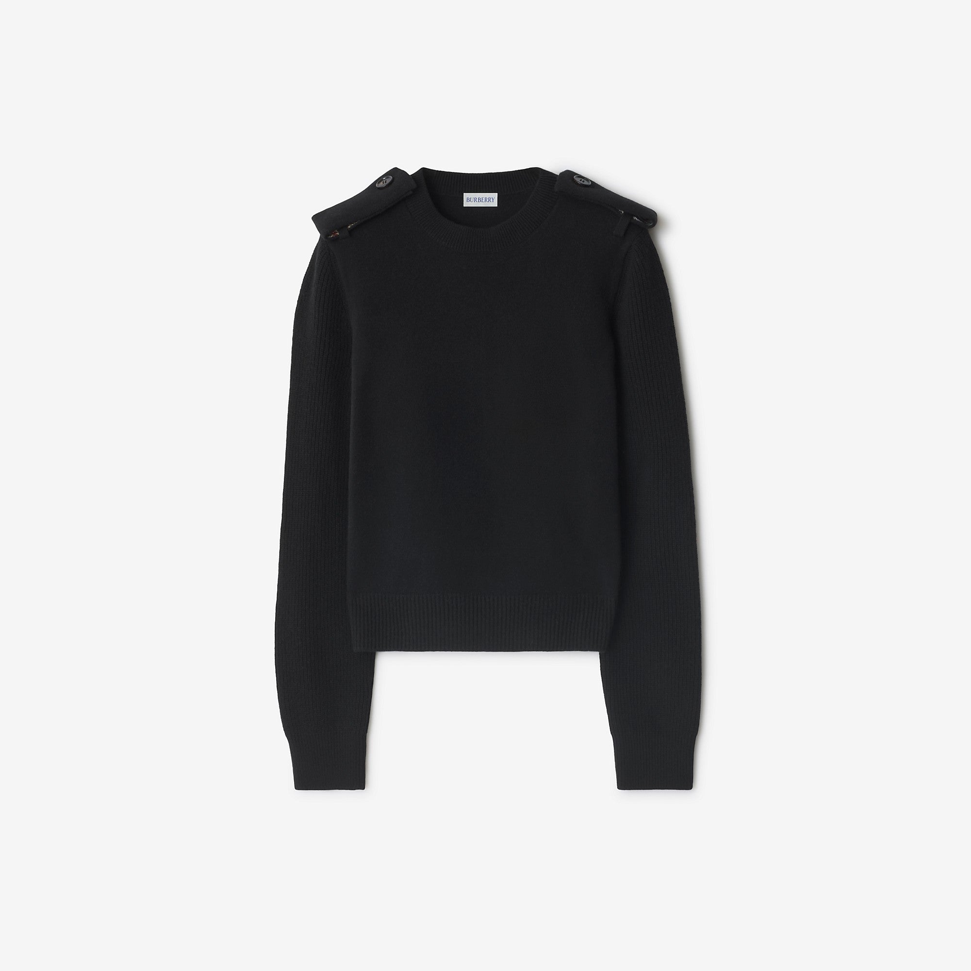 A crew-neck sweater in an Italian-knitted wool cashmere blend, cut to a regular fit. The design is detailed with Burberry Check-lined epaulettes inspired by our signature trench.