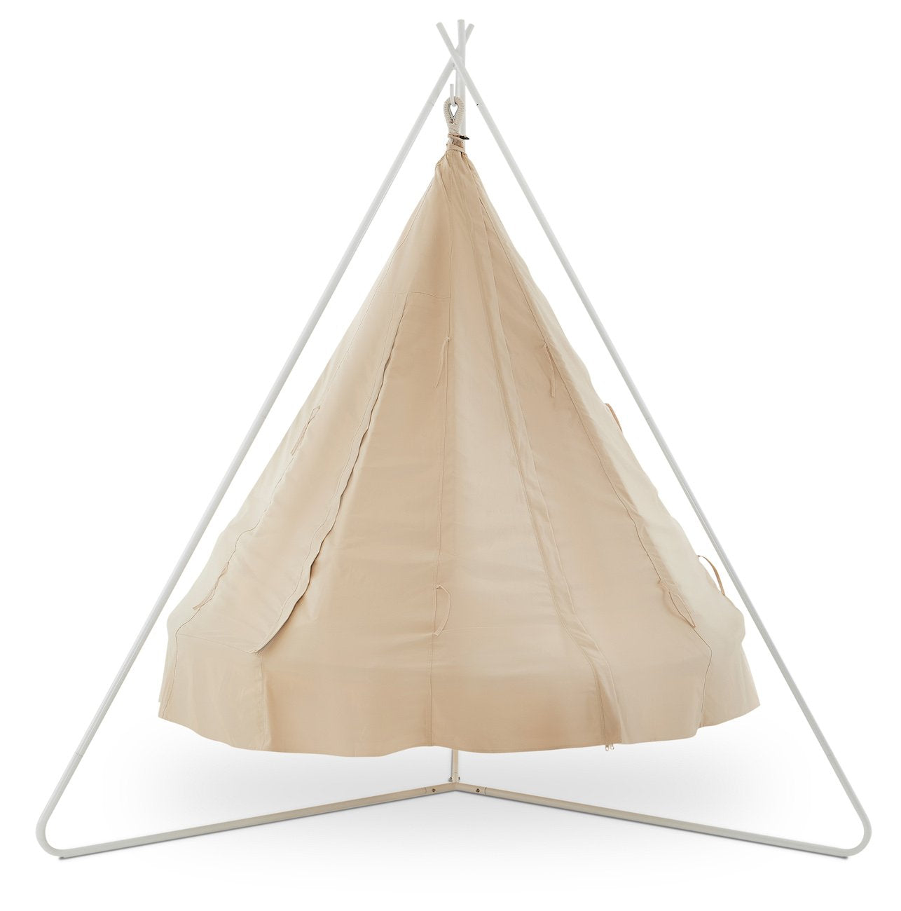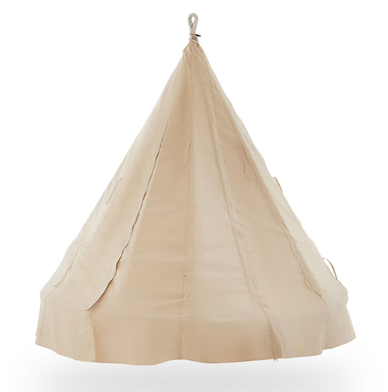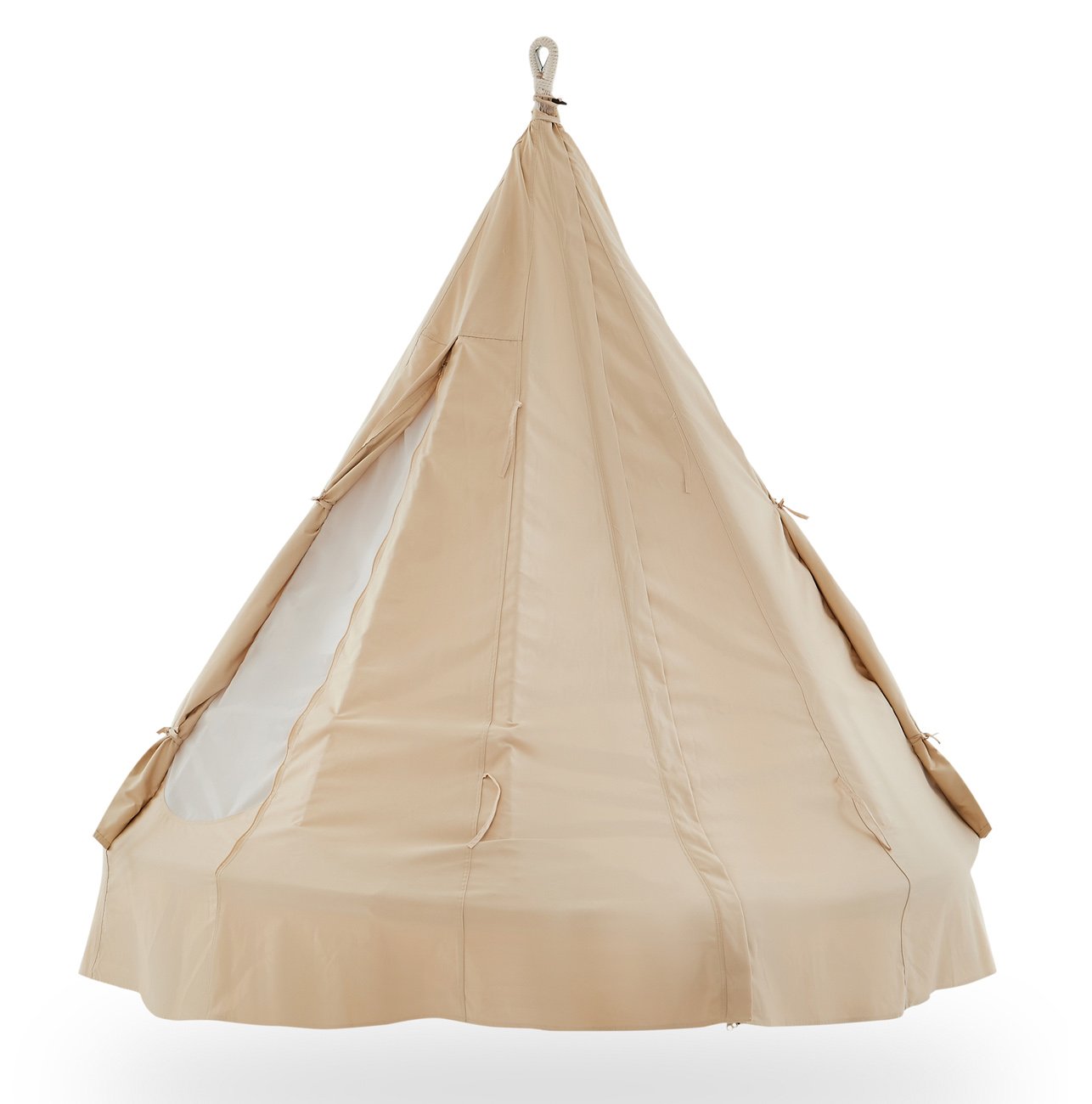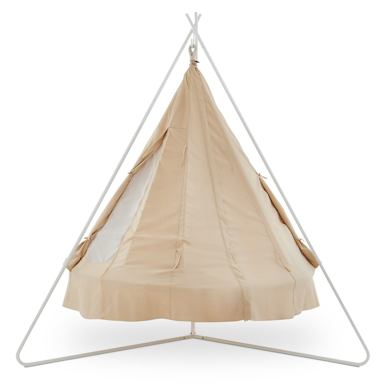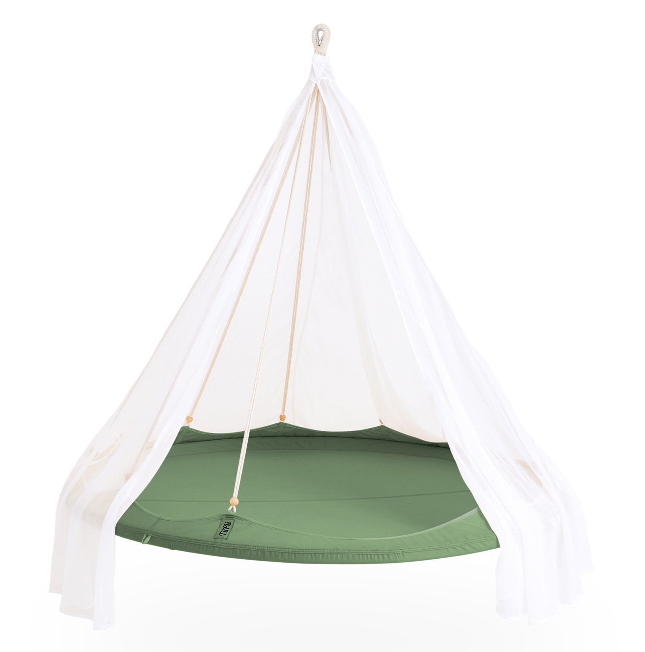 Designed with high-quality soft poly-cotton canvas, macramé finishing touches, and a cosy attachable white sheer net.