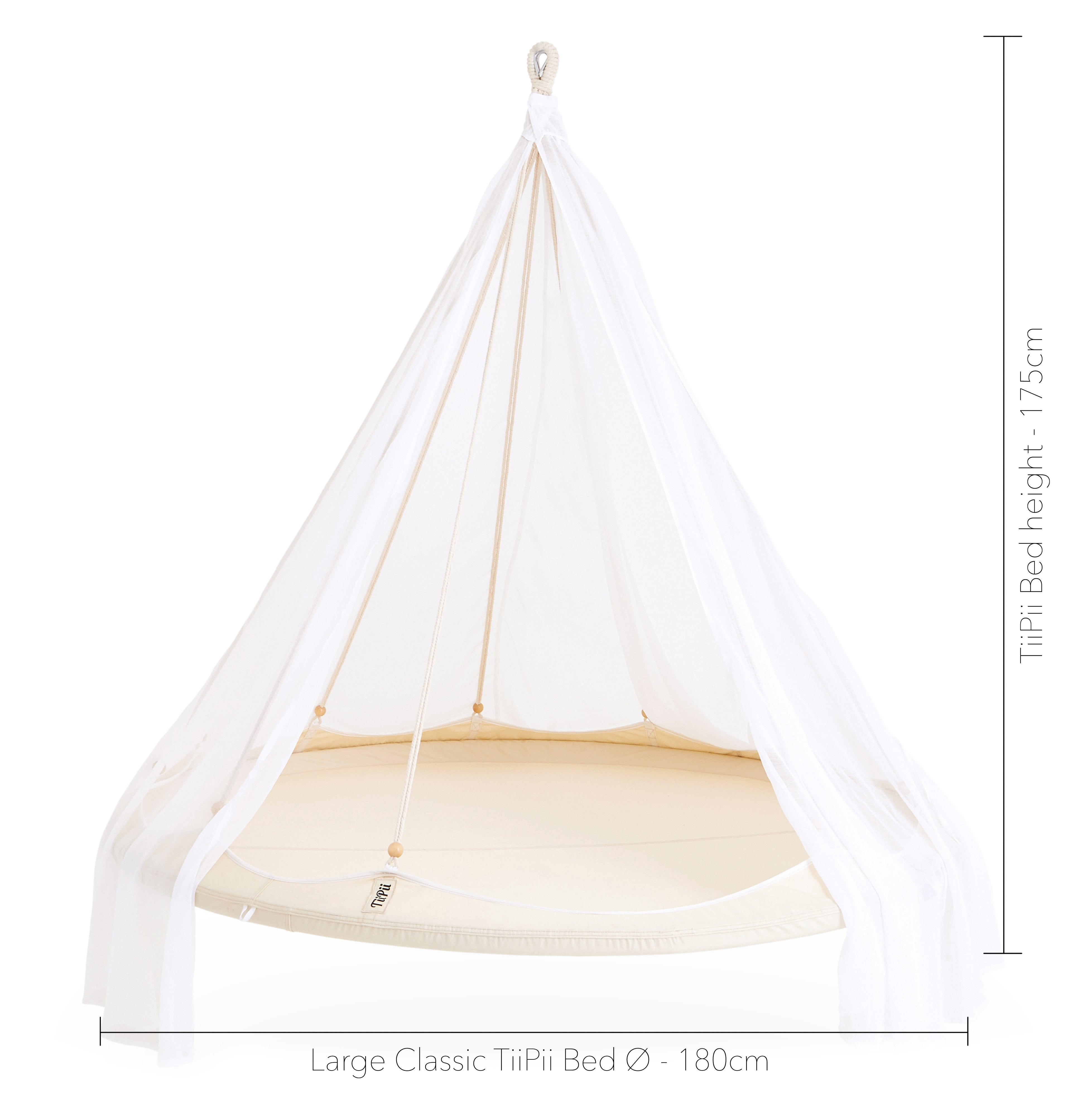 Comfortably supporting 3-4 adults, the Large TiiPii Bed is beautifully suited indoors within the home, due to its cotton-like appearance, while still being suitable for seasonal periodic use in the garden.